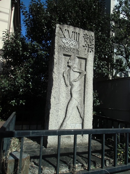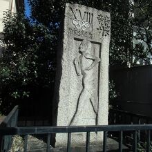 甲州街道沿いの歩道に石造りの記念碑があります。