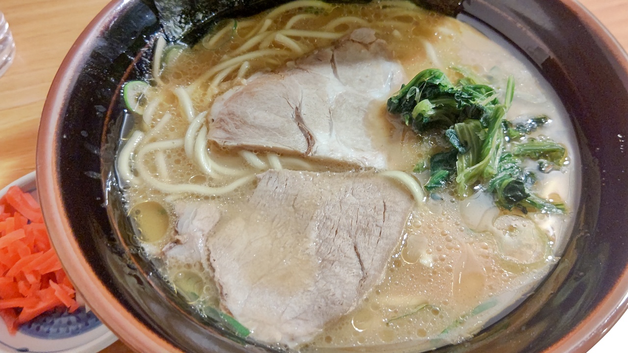 今回初めてこのお店に行った。きっかけは関西にある横綱ラーメンと勘違いだった。汁は醤油とはいえ、こってりして美味しかったが、これほどこってりなら長浜ラーメンや、そこまで行かなくても本場の横綱ラーメンくらいの細さのほうがしるとからつきもっと美味しいと思う。麺も選択制にすればよいのに、と思った。