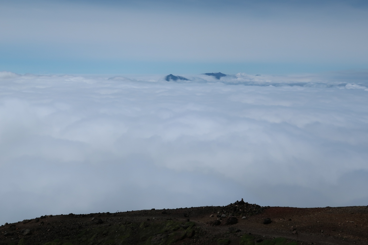 北海道で一番標高の高い山です。ロープーウェイ利用で、山頂駅から登りました。あまりお天気がよくなく、ガスって周りが何も見えない状況の時もありましたが、霧が晴れた合間に、雲海の中にトムラウシ山の頂が見えたのは感動でした。