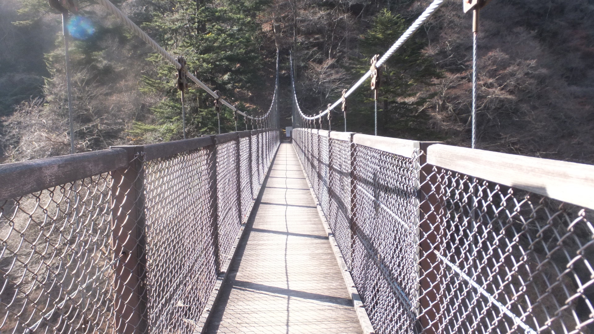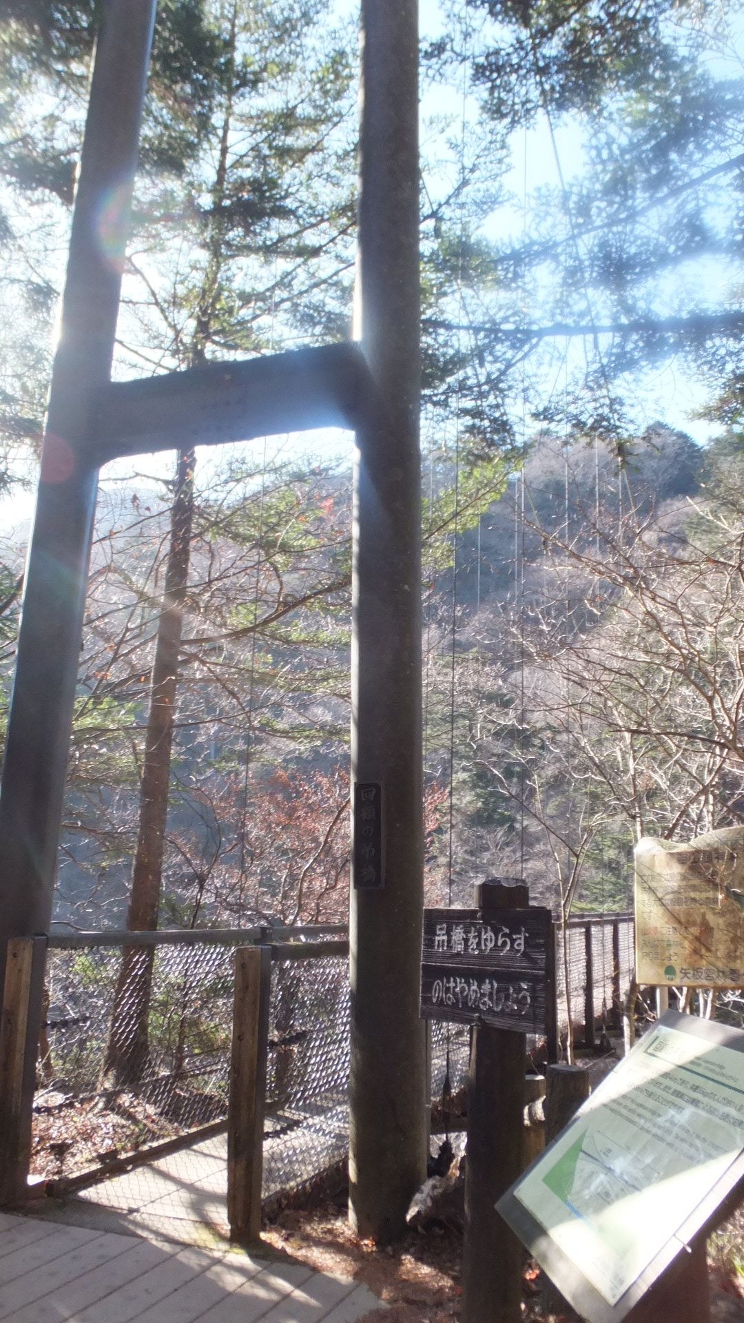 栃木の塩原にある塩原渓谷の散策で訪問しました。駐車場もあります。駐車場から階段を使って吊り橋へ。ちょっと紅葉は終わりかけだけど、一部色づいていてきれい。橋は吊り橋なので揺れるけど、まあ頑丈そうで安心です。橋を渡ると滝もあります。