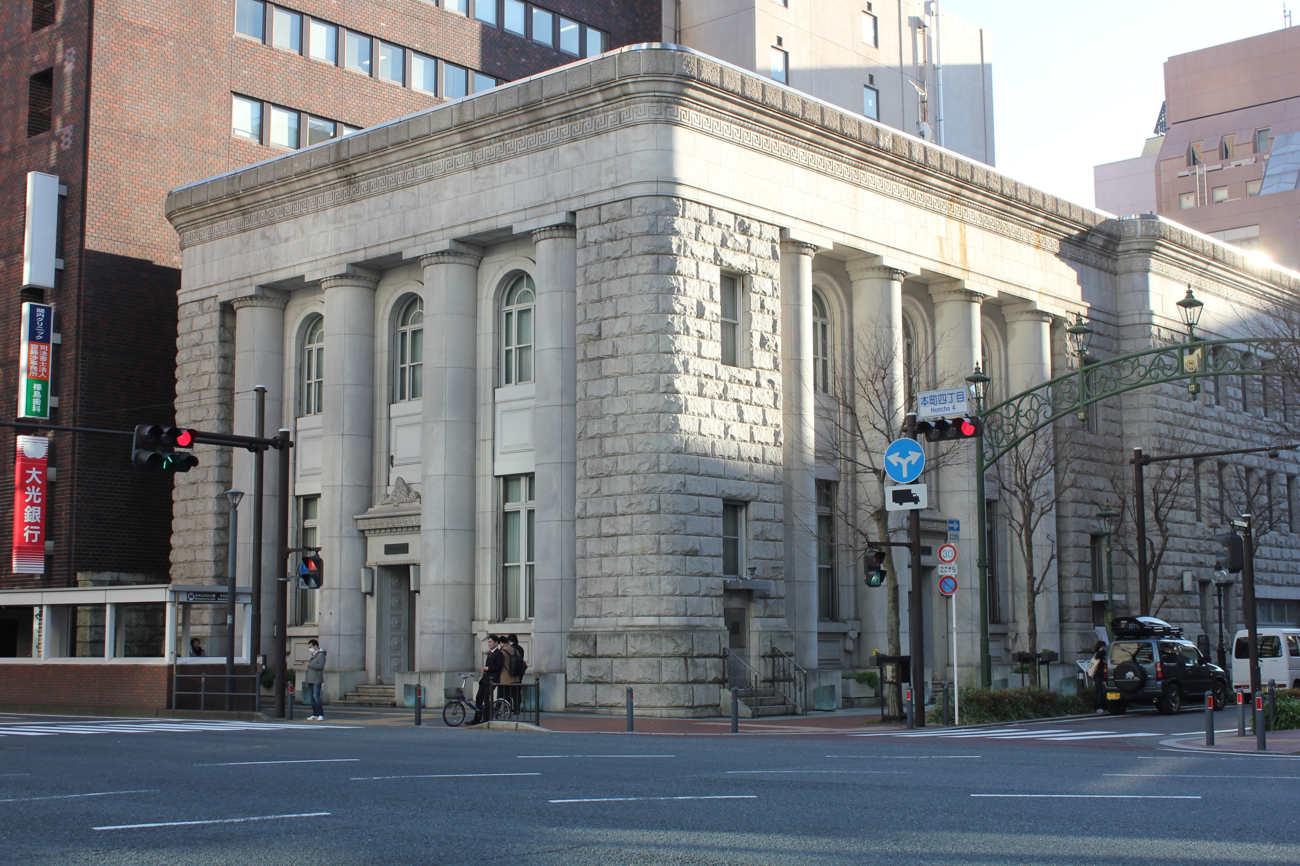 1929年に安田銀行横浜支店として建てられた、太い円柱が印象的で重厚な建物です