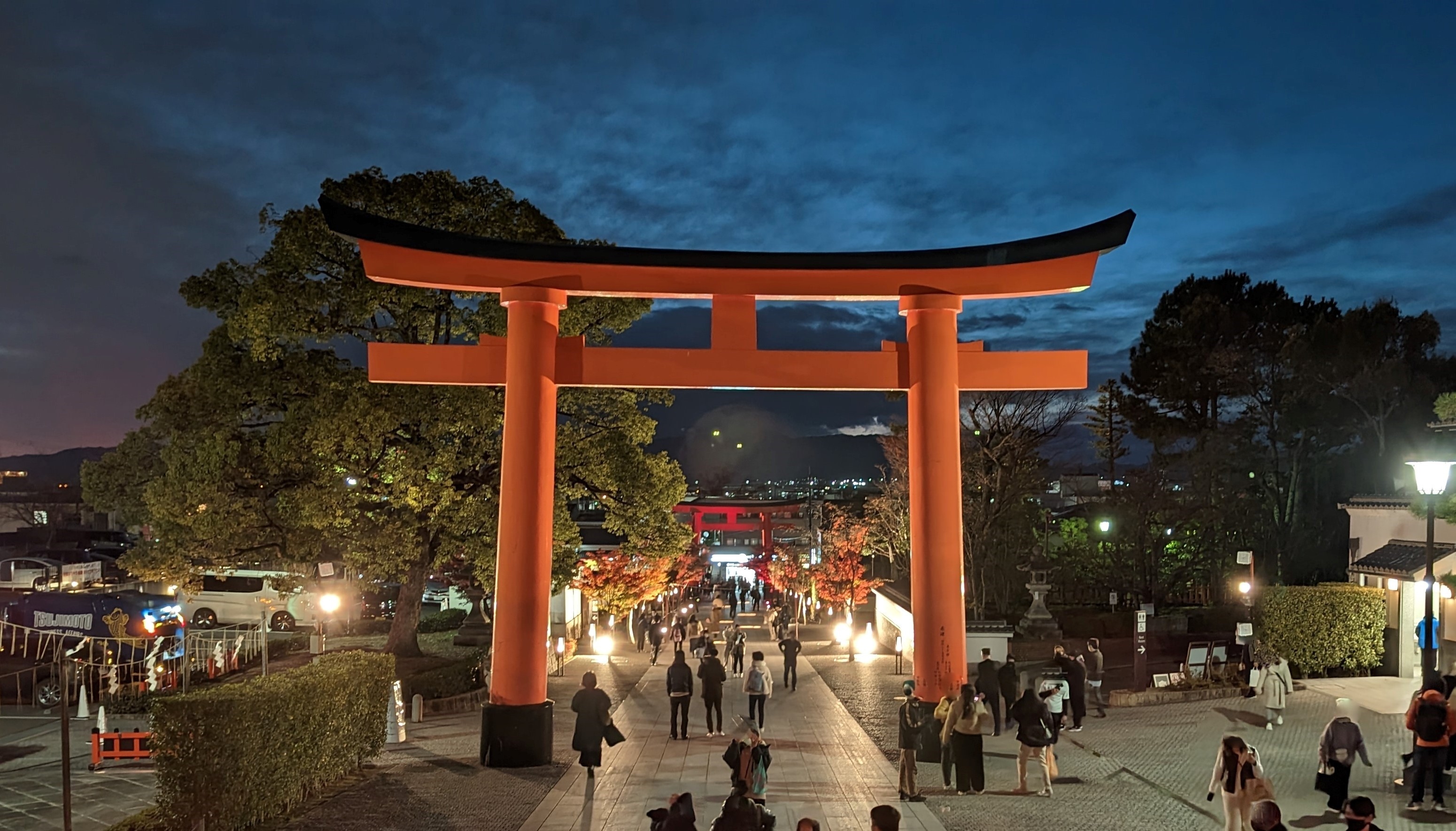 一方でJRの稲荷駅からの表参道は厳かな静かな参道で、対照的な雰囲気の参道です。ライトアップの時期はキツネ等の影絵のスポットライトが可愛いです。JRと京阪の駅は歩いて5分程なので、行きと帰りで二つの趣の違う参道を歩くのをお勧めします。