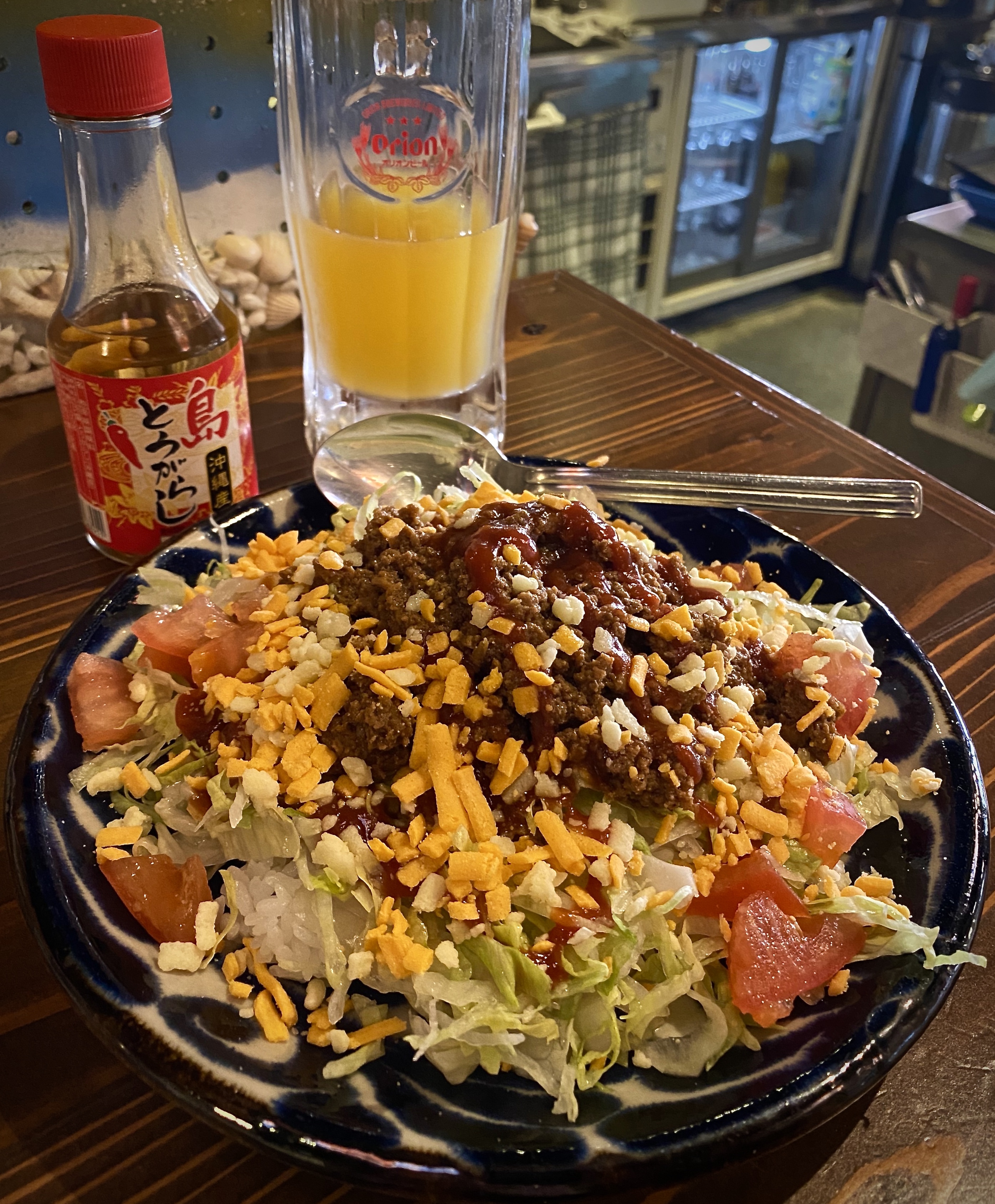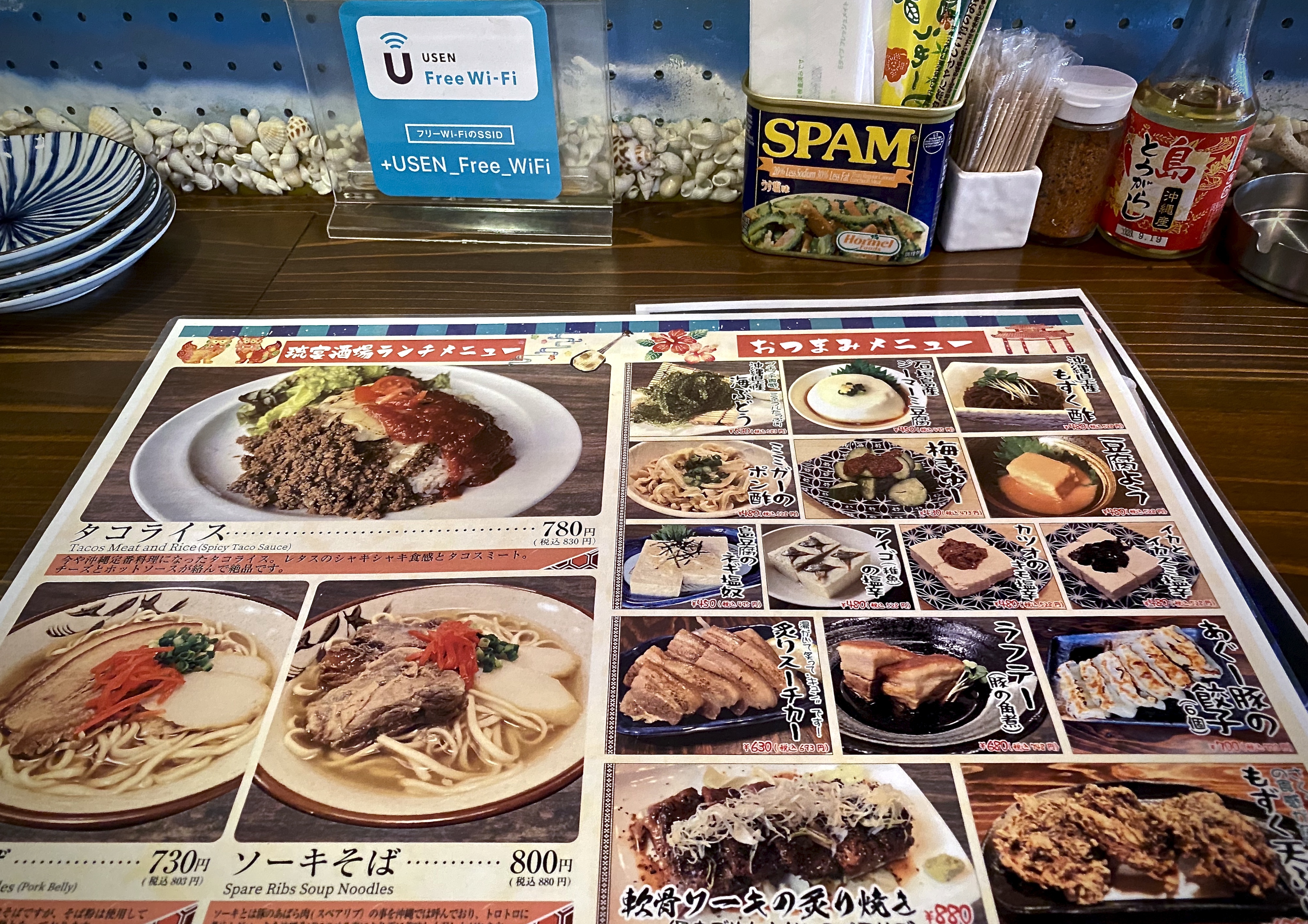 料理は「ソーキそば/沖縄そば」「タコライス」のみで、あとはつまみ程度の料理(殆どが沖縄料理)のみと行った感じで、がっつり食べるには、少し物足りないラインナップです。