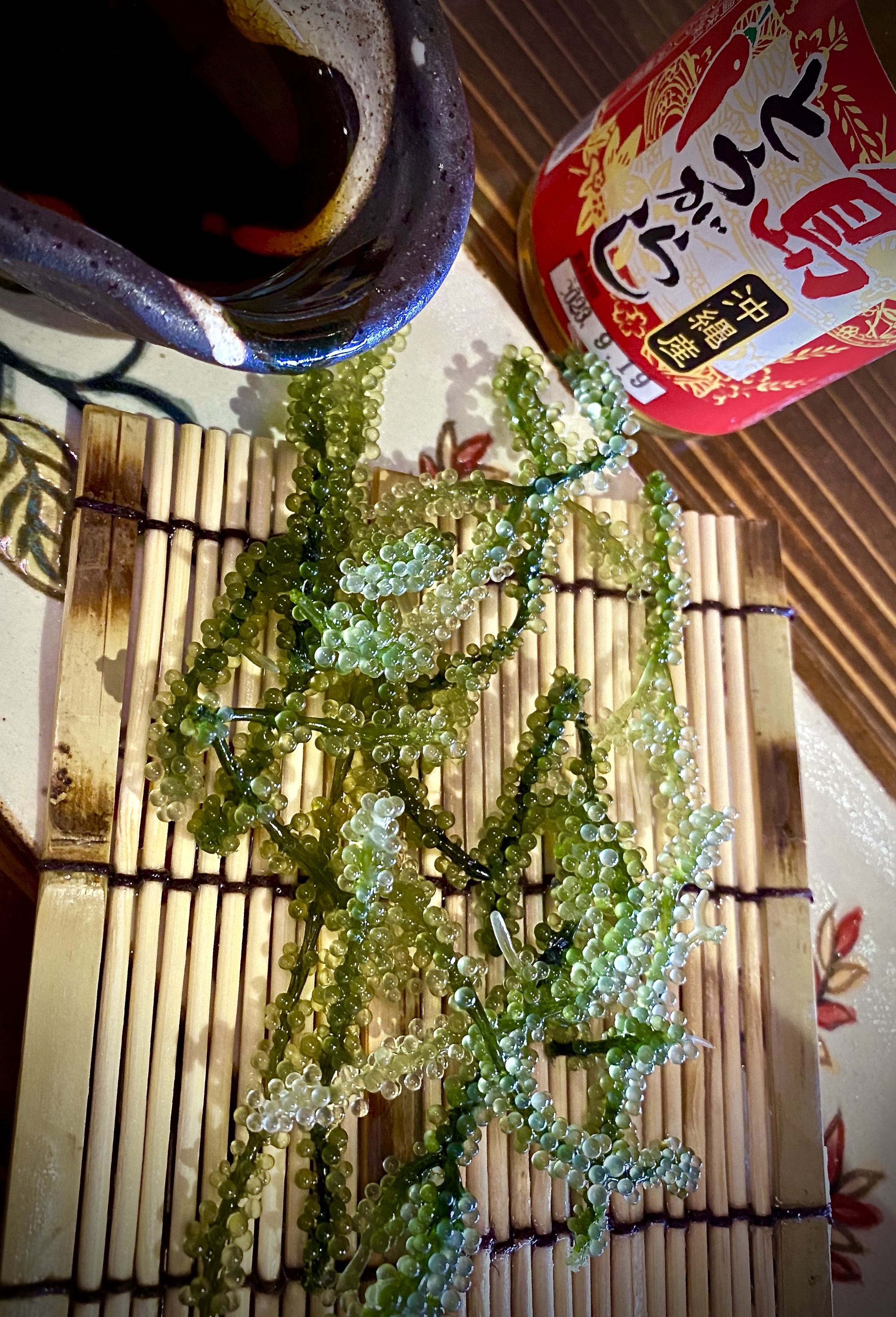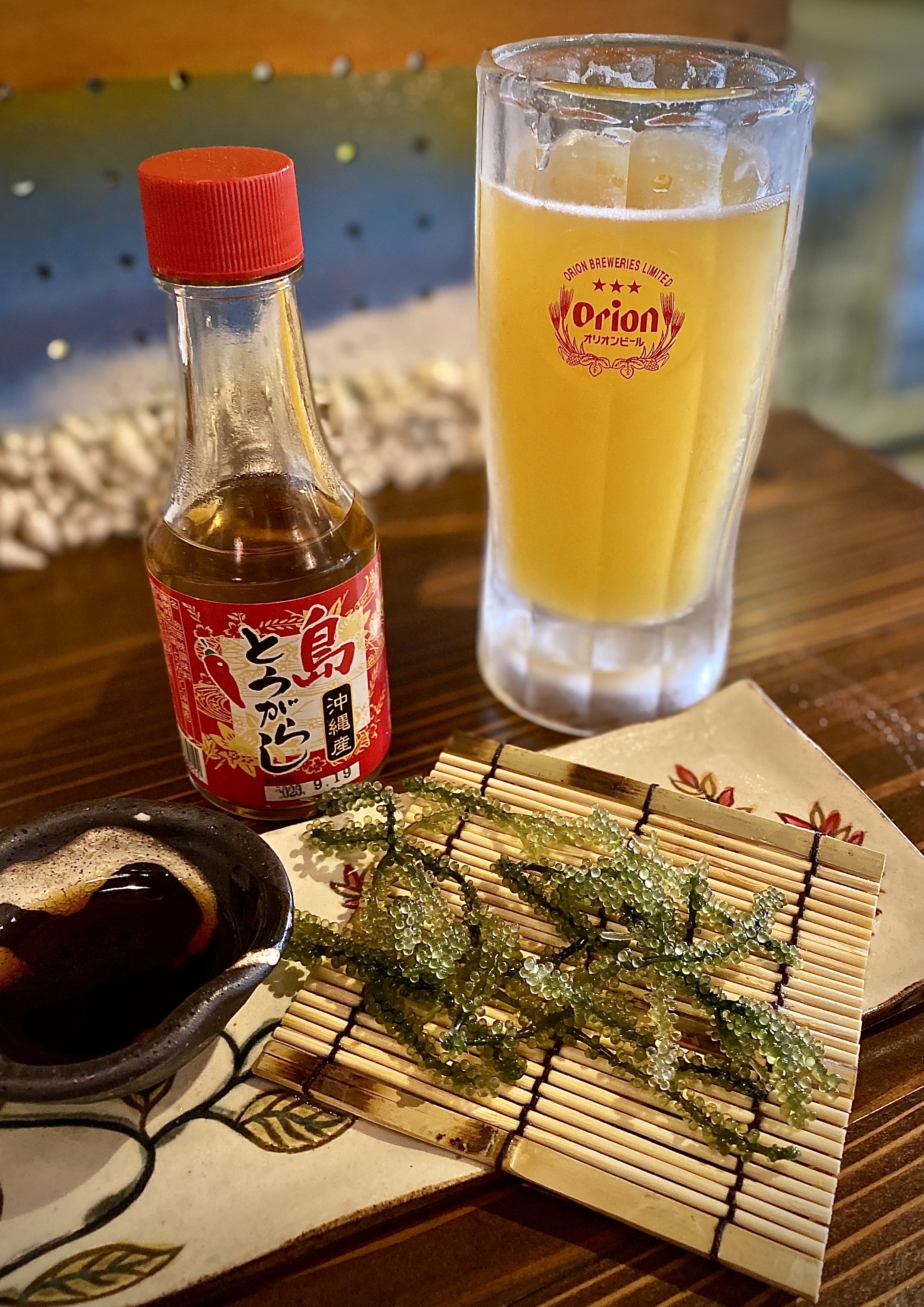 店を覗いて見ると、大きなカウンターが一つ真ん中にあり、その周りに気持ち(小さな)二人がけで一杯いっぱいのテーブルが壁に張り付いて囲んでいる感じのバー式の沖縄料理屋です。
