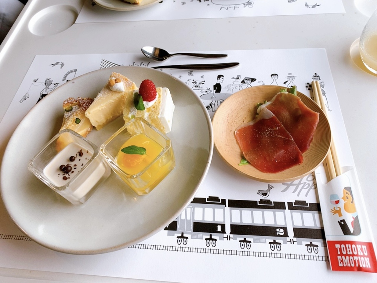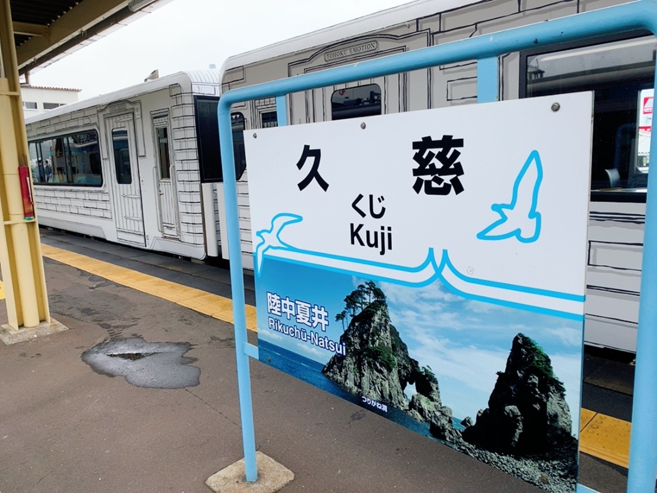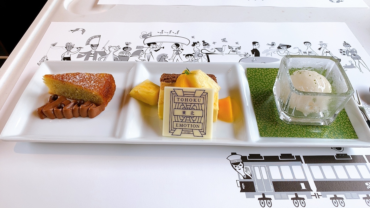 TOHOKU EMOTIONは、2011年に発生した東日本大震災からの復興と地域の活性化を目的に、JR東日本が運行を開始した観光列車です。 JR東日本びゅうツーリズム&セールスというサイト経由でしか予約が出来なくて、しかも2名以上じゃないと手配は出来ないので、一人旅には厳しい。 誰かお友達とかを誘うにしても、東京のお友達を誘う場合だと現地集合になっちゃうし、なかなか予定が合わずなかなか実現できませんでしたが、今回、海の日の連休に初めて乗ることが出来ました。 青森の八戸と岩手の久慈を結んでいますが、往路区間(久慈行き)は、ランチコースの提供、復路区間(八戸行き)はデザート&アフタヌーンティーの提供です。