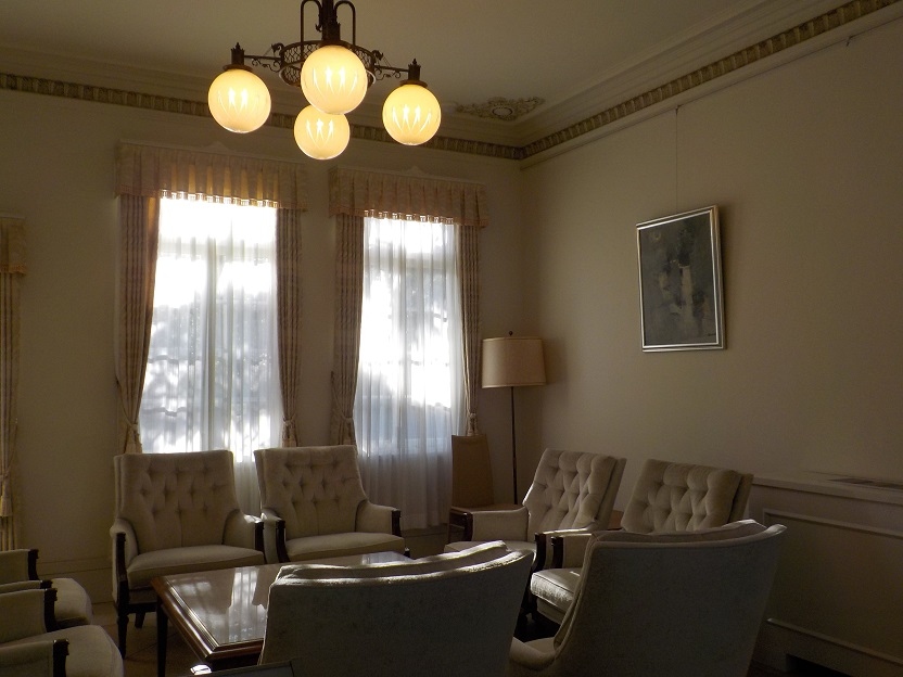 福山城公園の一角にある和洋折衷の建物で有形登録文化財になっています。入口横の事務所に声をかければイベント中でなければ内部を見学することもできます。洋館の内部は喫茶になっていて美味しいチーズケーキやプリンがいただけます。窓から福山城や日本庭園が見えて休憩におすすめです。
