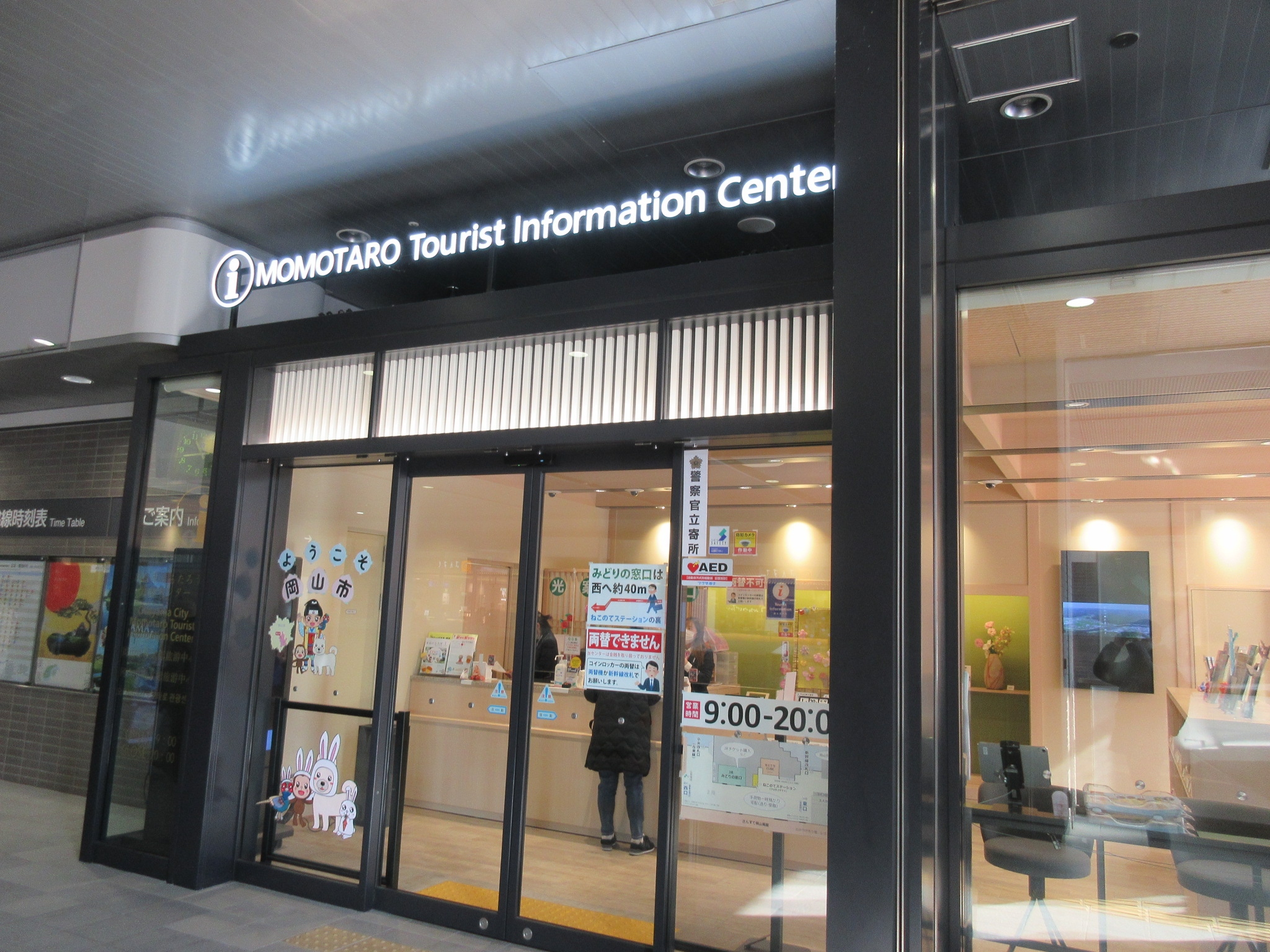 岡山駅の東西自由通路を歩くと嫌でも目に飛び込んできました。岡山なので「桃太郎」の愛称を付けた観光案内所になっており、岡山市はもちろん倉敷や津山など他町村へのアクセルに関する情報も入手でき、非常に重宝しました。無料で頂けるパンフレットも充実しているので、是非ご利用をお勧めします。