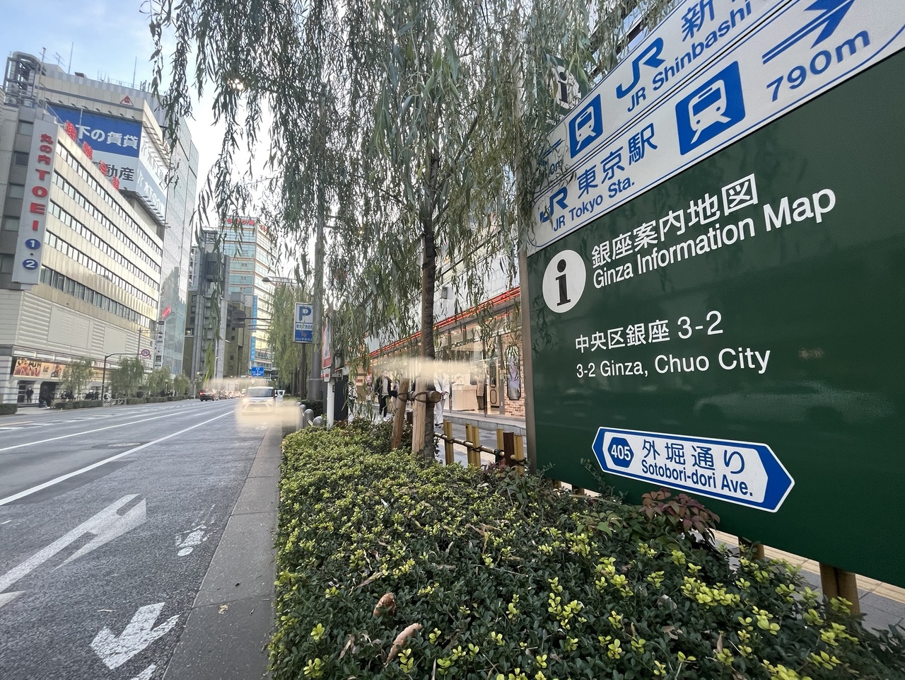 「銀座1丁目」から「8丁目」を南北に走る大通りのひとつ 【 西銀座通り(外堀通り) 】