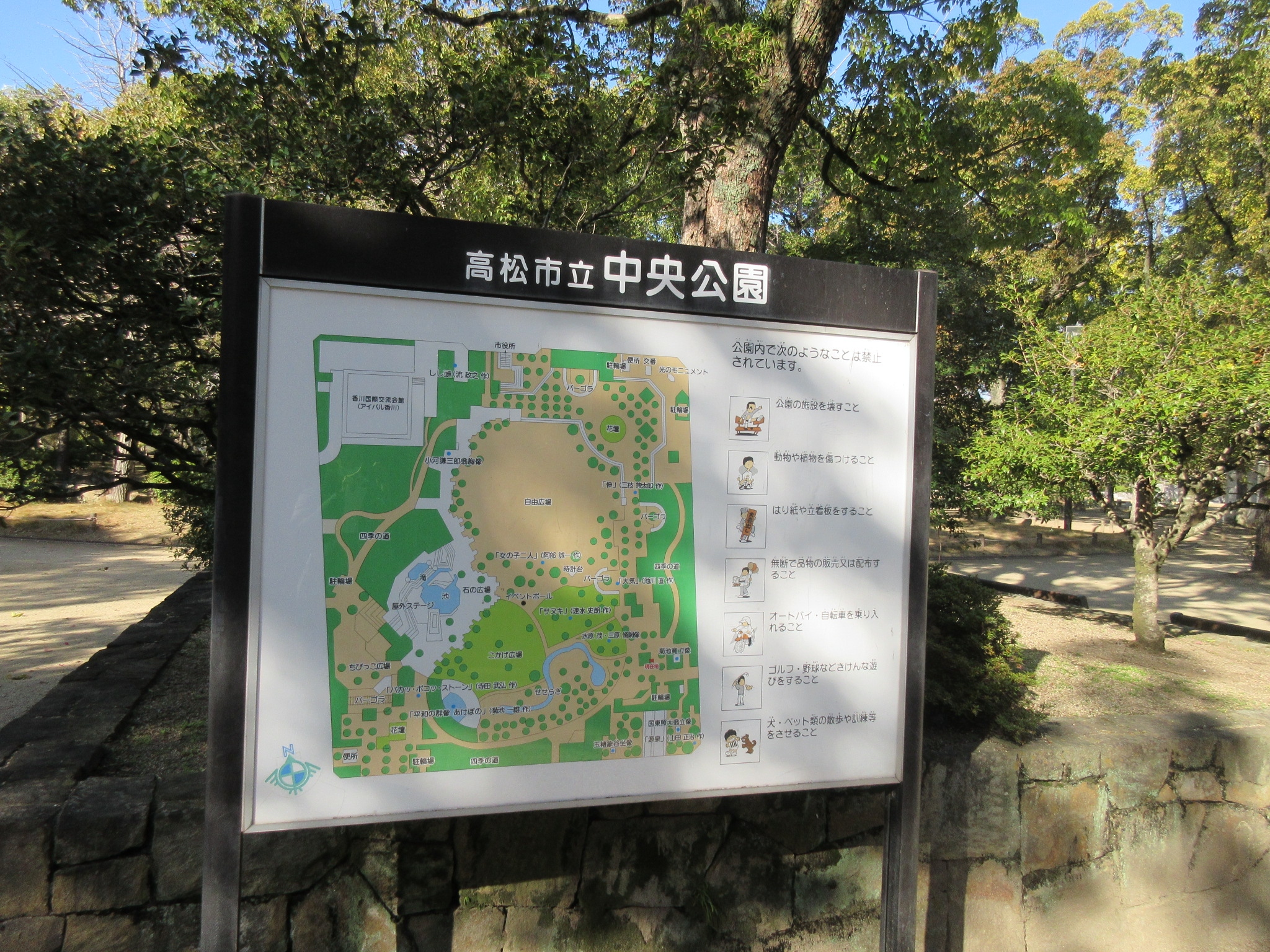 香川県の行政の中心である香川県庁からほど近い場所にある【中央公園】を散策の際に訪問しました。百十四銀行に近い東側の入口から入ると、その先には広大な公園が開けていました。特別何かのスポーツ用に整備したというわけではなく、多目的に使える公園となっていました。公園を囲む木々の生い茂った場所には、菊池寛の銅像もあって目を引きました。