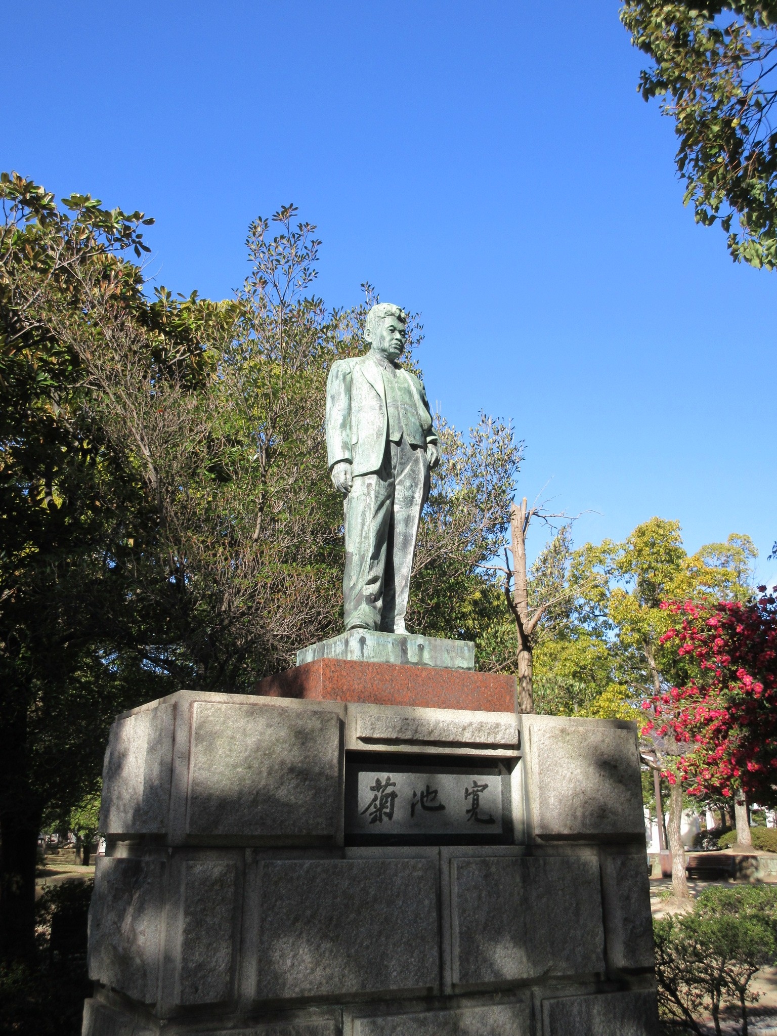 公園を囲む木々の生い茂った場所には、菊池寛の銅像もあって目を引きました。