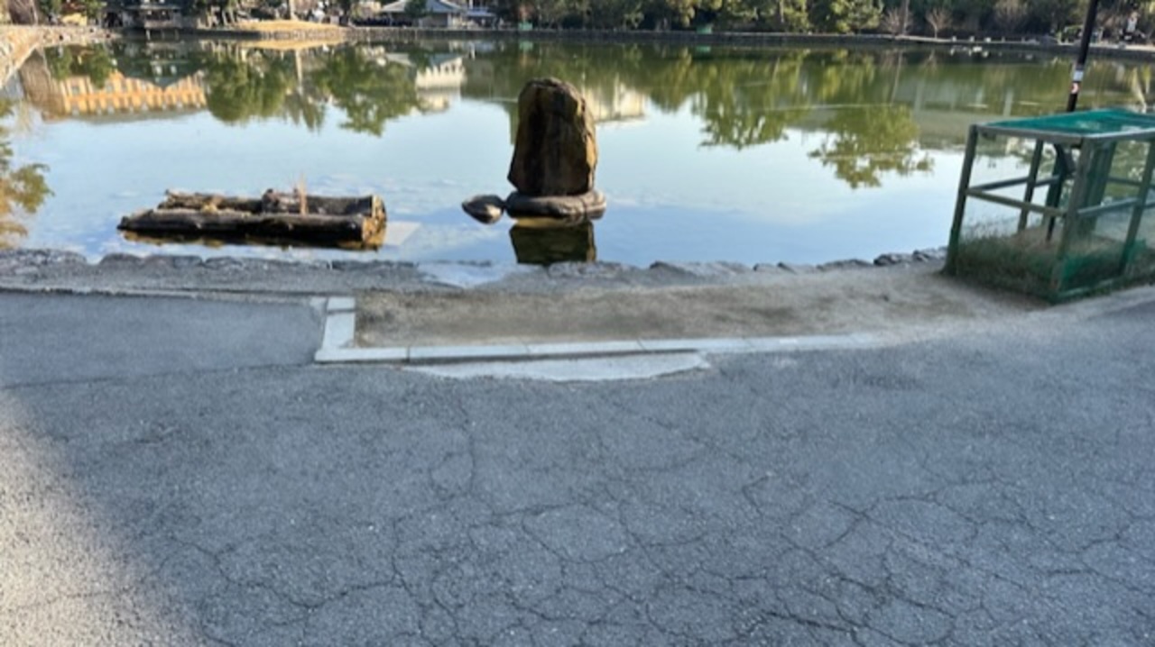 晴れた日は亀が岩の上で甲羅干しをしているのどかな風景を見ることができますが、この日は寒かったからかほとんど姿が見えず残念でした。春~秋なら見られるのではないかな。