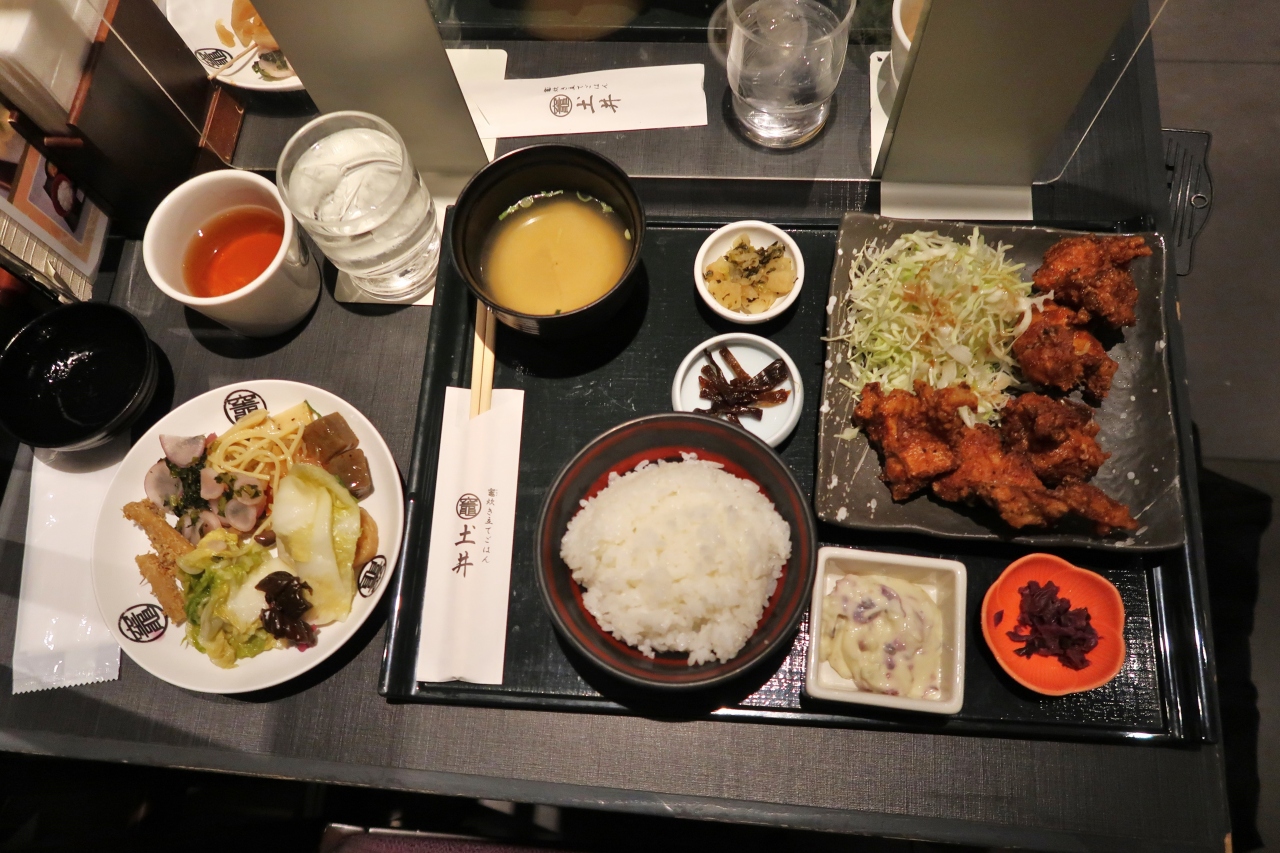 土井志ば漬本舗が運営する漬物レストランです。京都駅構内のアスティ京都の、新幹線の改札のそばにあるので、帰りの新幹線に乗る前に最後の食事を楽しむことができ、便利でした。18時過ぎにはお店の前に行列ができ始め、入店まで10分ほど並びました。志ば漬入り特製からあげ膳、お漬物天ぷら膳をいただきました。お漬物ビュッフェも付いていて、土井志ば漬本舗の漬物を何種類か試食することができました。