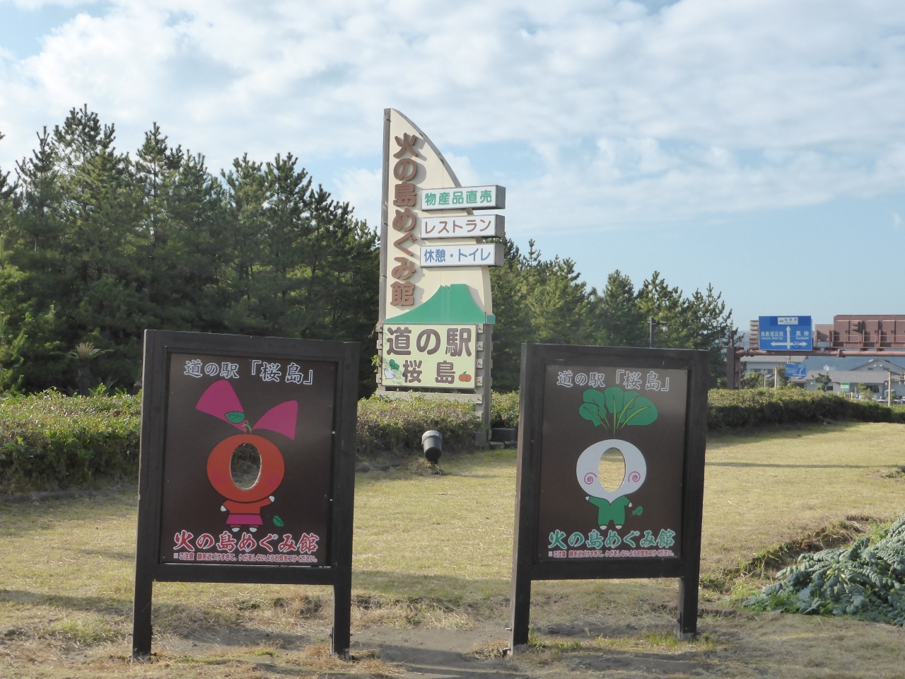桜島港フェリーターミナルからすぐ近くにある道の駅です。店内には、桜島のお土産や産直野菜・果物がたくさんありました。お食事処もあり、地元の食材を使ったお料理がいただけます。敷地内にある畑では、桜島小みかんや桜島大根が植えられていて収穫の時を待っていました。