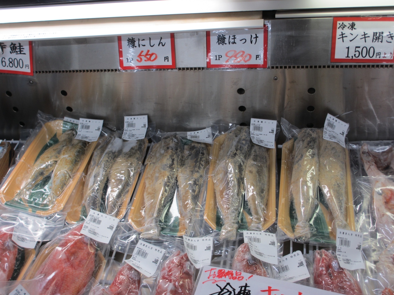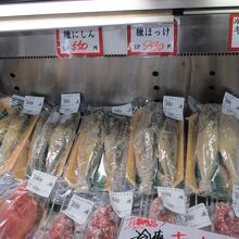 干物や冷凍の丸のままのお魚が売られていた。