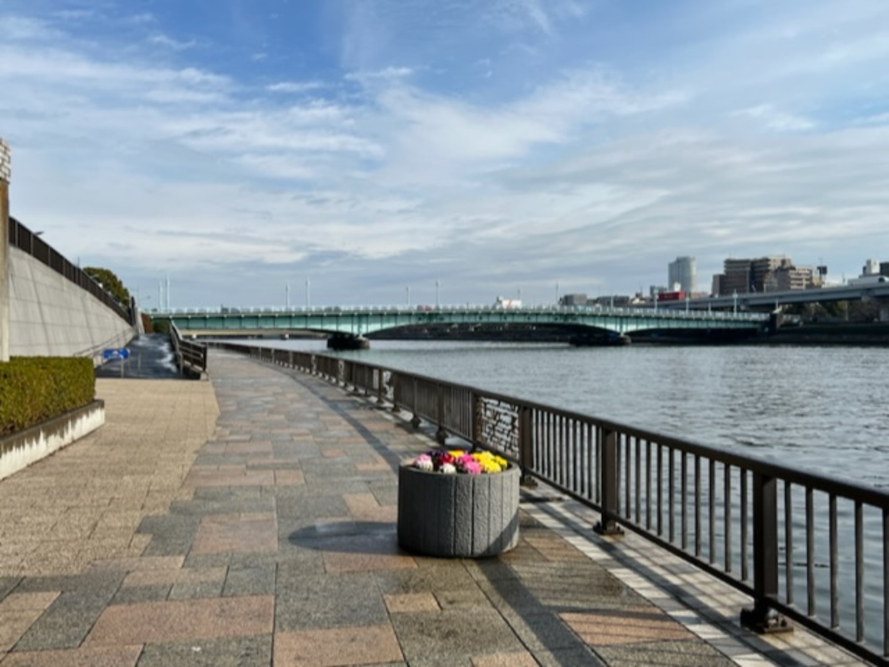 昼食を言問橋の浅草側にあるちんやですき焼きを食べようと隅田公園を通り行きました。隅田公園から眺めました。隅田川にかかる吾妻橋の隣の橋です。残念ながらちんやは満席で入れませんでした。