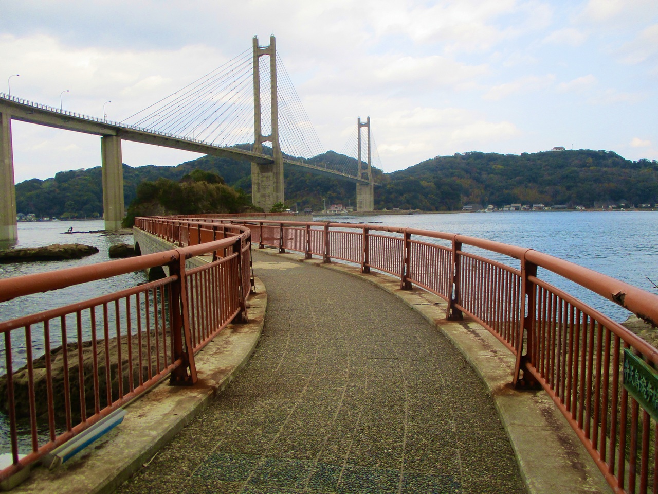 呼子の萬坊で整理券をとって、開店時間になるまでの間の時間潰しに、ちょうどいい場所にありました。弁天島には弁天様も祀ってあって、地元のワンちゃん連れの方がお参りしていました。遊歩道の先で、釣りを楽しんでいる方もいました。