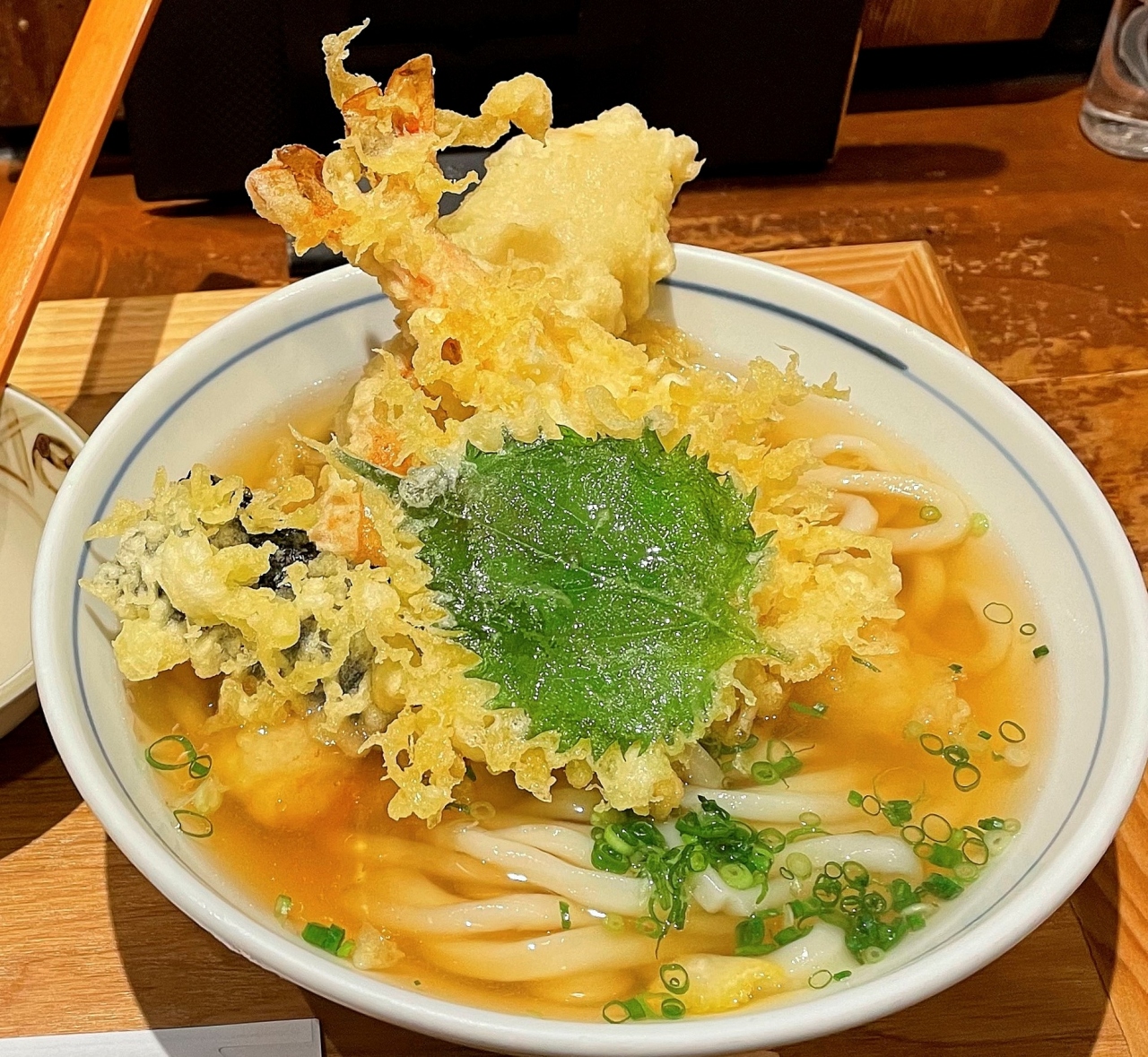 名物ちゃんぽんうどんと温玉おろしは頂いたので、今日は天ぷらうどんです。