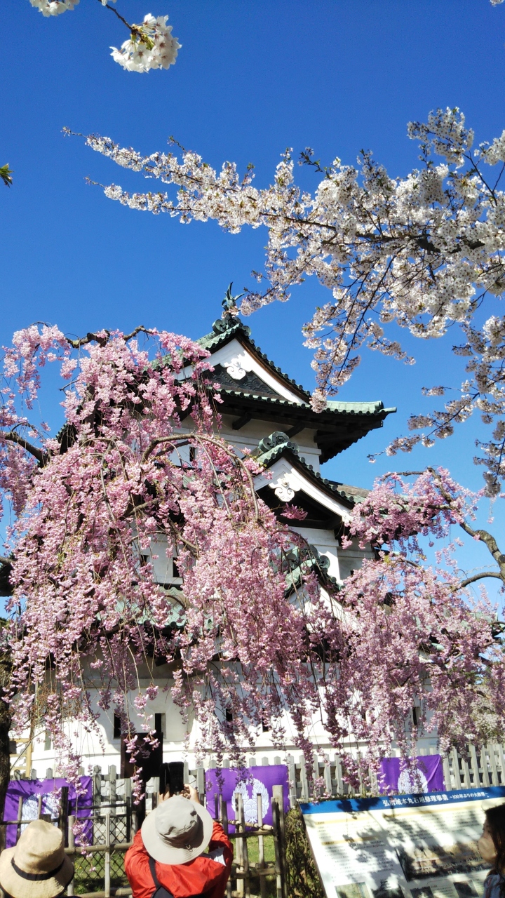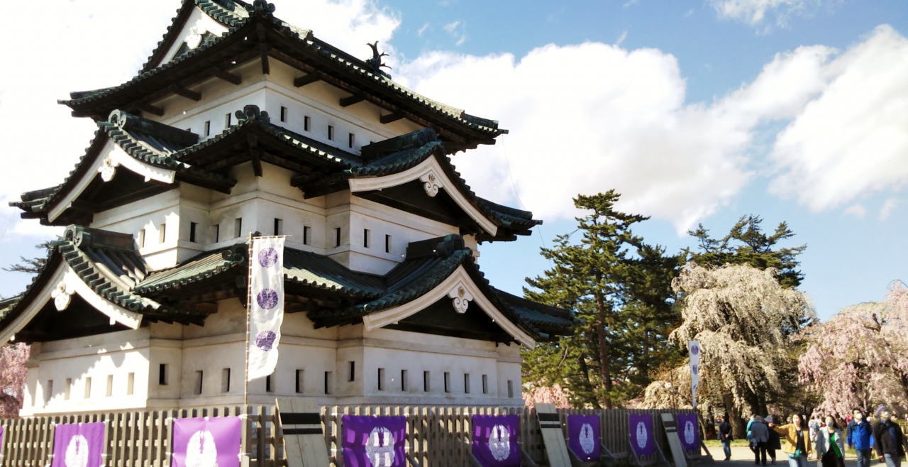弘前公園の中心にある,日本の現存天守の1つ。弘前城です。天守といっても,初めの天守は火災で焼け落ち,江戸時代に再建されたものです。櫓だったものを天守として使っているので正直小さいです。
