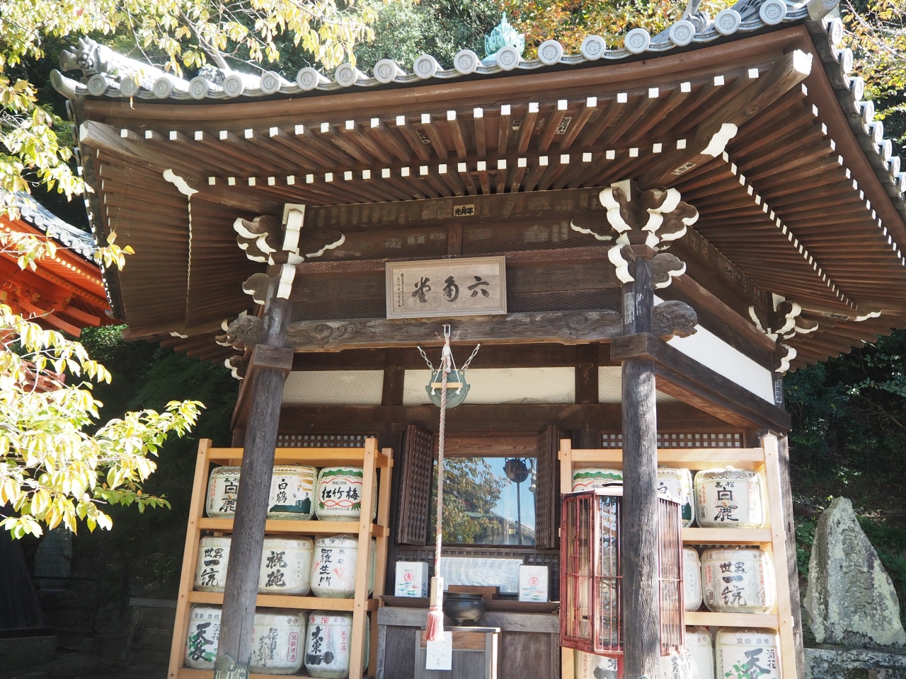石段を登る途中に幾つかお堂が有り登り切ると新しい仏殿が右手に見え、正面は六角堂で