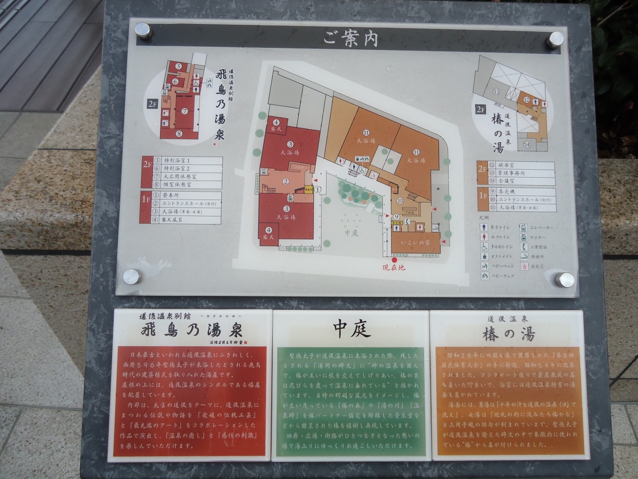 現在改築中人気の本館、飛鳥時代模した飛鳥乃温泉、椿の湯
