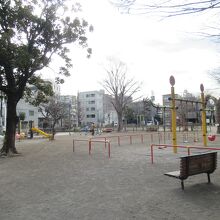 椎名町駅南口から2分ほどにある公園です。幼児用アスレチック滑り台、ブランコ、スプリング遊具がある子供の広場、健康器具がある散策広場、球技は禁止の多目的広場に分かれています。桜などの大木があり、夏は葉が茂って日影ができます。訪れた平日午前、保育園児たちが保育士と一緒にやってきて遊び始めていました。遊具の数は多くありませんが、子どもたちを見守ることができる広い視界の公園です。