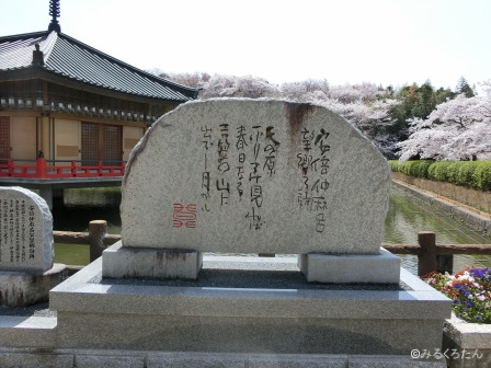 桜がほぼ満開で金閣浮御堂と桜がとても美しかったです。