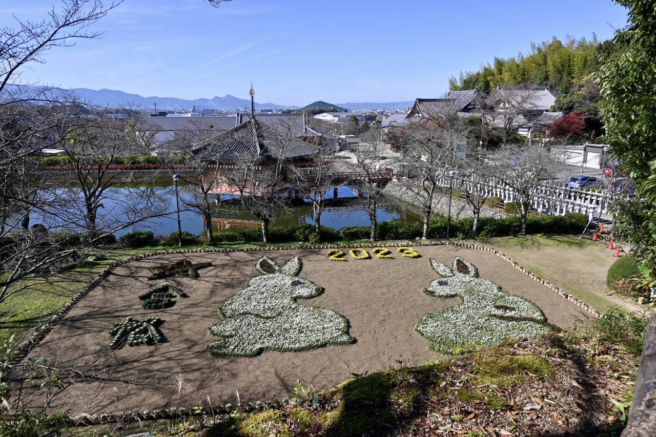 大和三山の一つ耳成山と金剛山系の二上山が眺望