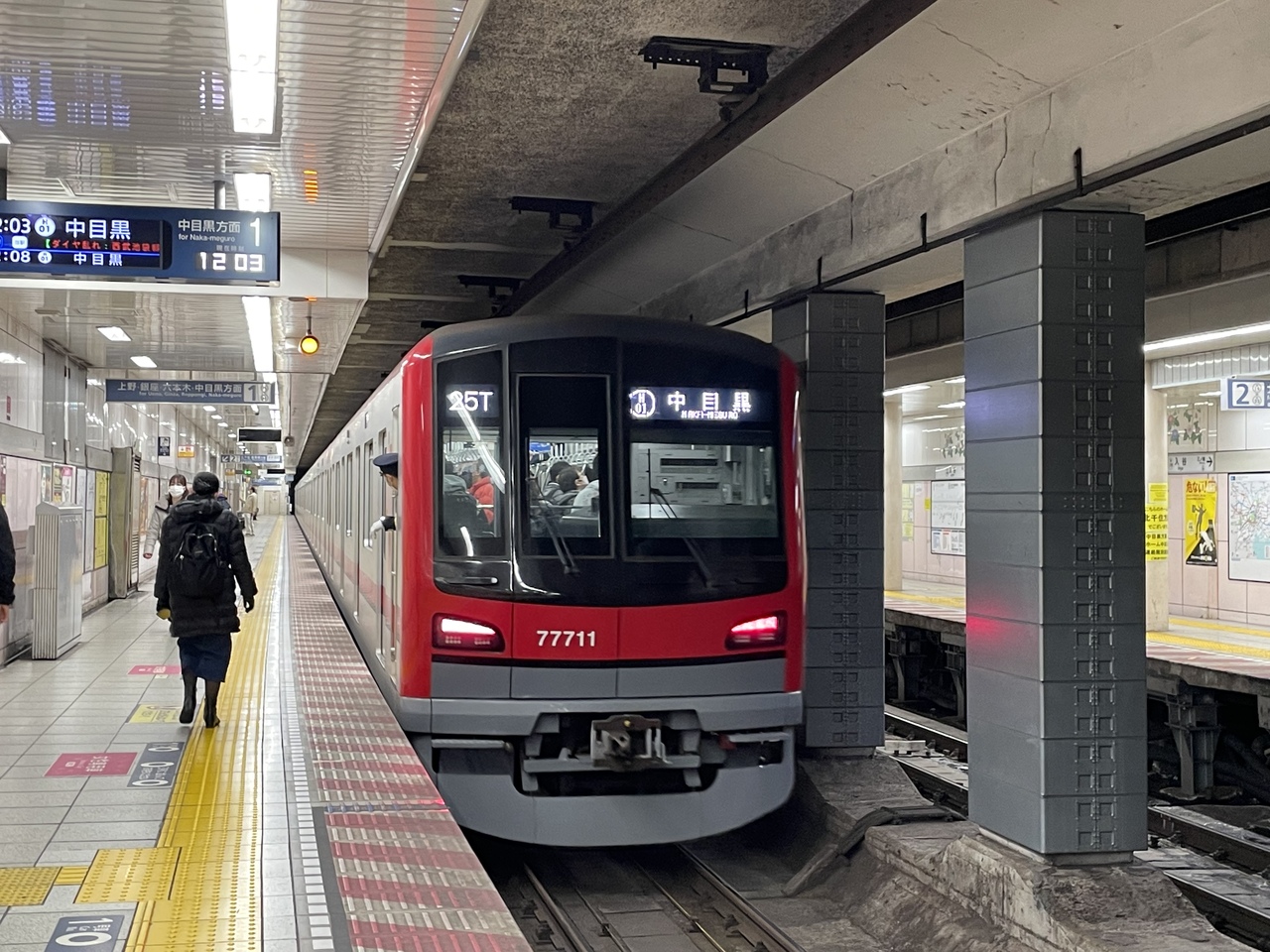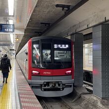 かつては短い17メートルの車両が入っていましたが今は他線と同じ20メートル車両に置換れています。東武は赤い70000型、東京メトロは青いラインの13000系でいずれも仕様はほぼ同じに統一されています。