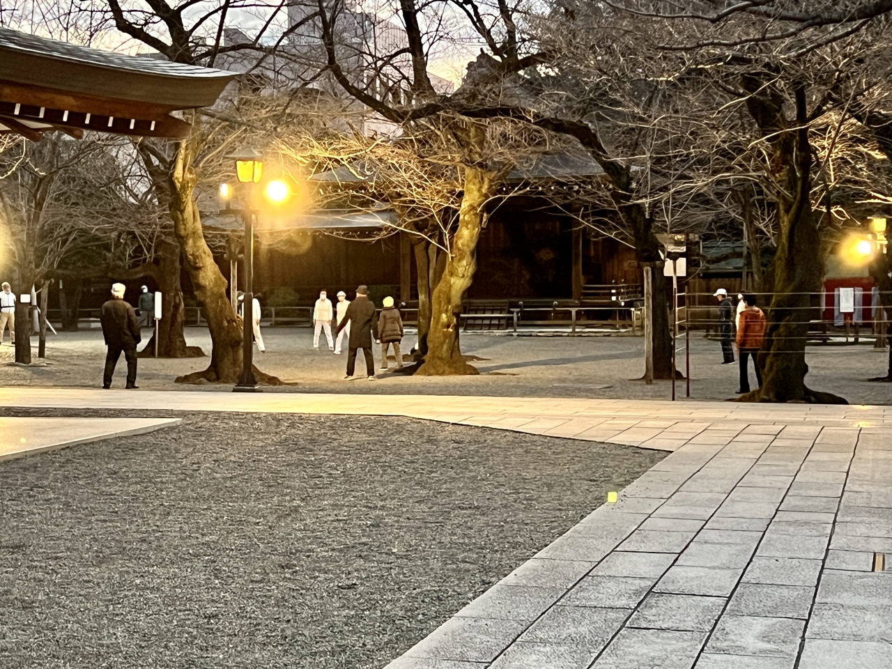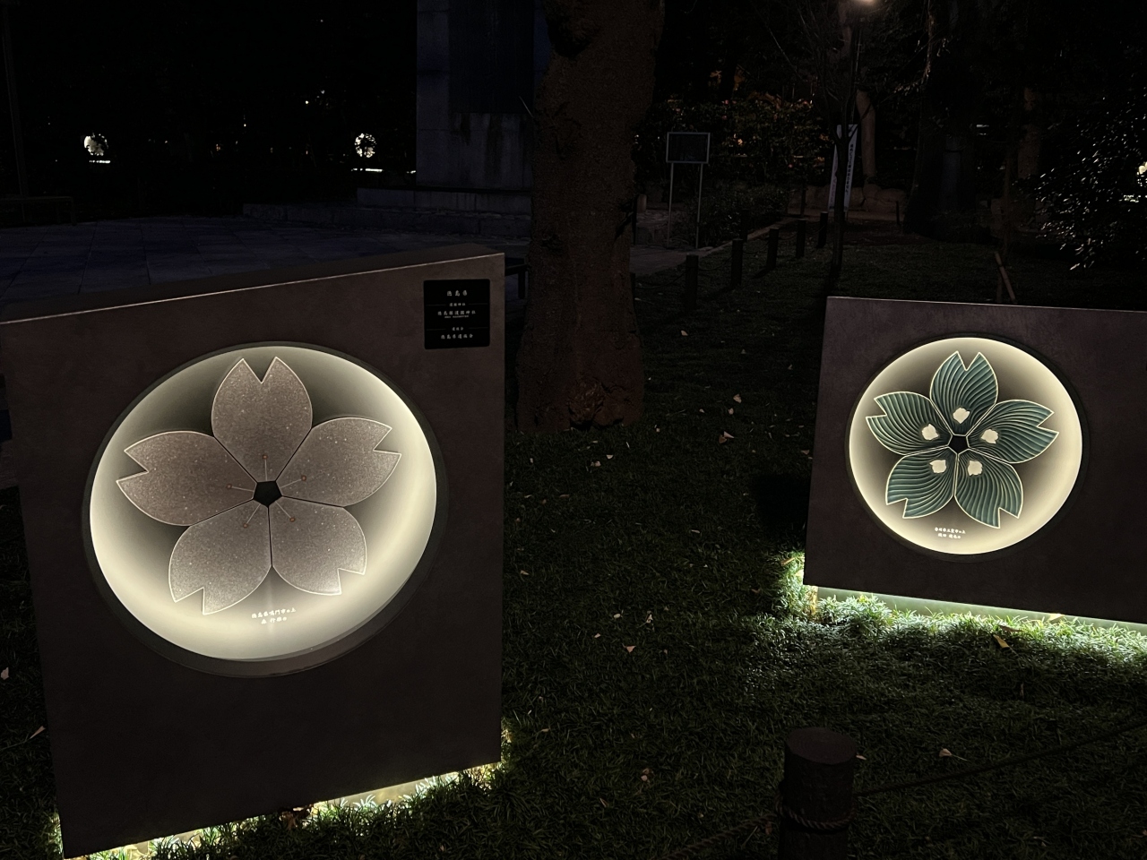 参道の右側には桜の花びらのモニュメントがライトアップされて綺麗でした。