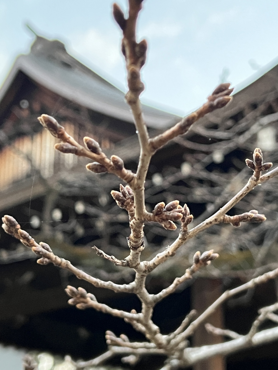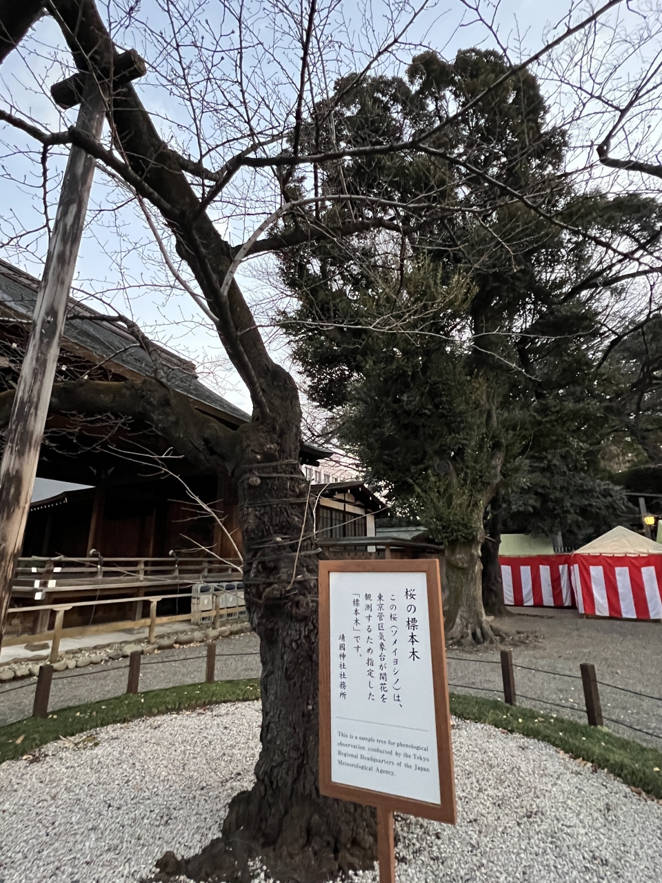 東京管区気象台が桜開花宣言をするソメイヨシノ標本木は、じっと春が来るのを待っていました。