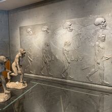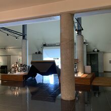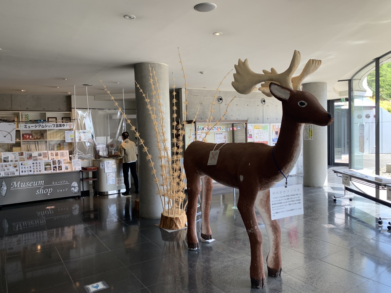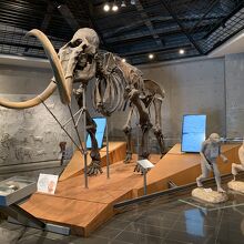 発掘地点から200mほど離れたところにあり、池も配する緑の公園になってます。平成4年(1992年)に開設されたモダンなデザインの博物館です。マンモスの骨格のレプリカが展示されていました。約1.5~3万年前の日本人の文化や生活が映像などで分かりやすく説明されています。遺跡から出土した石器や地層の標本なども展示されています。マンモスの辺り以外は撮影禁止。写っているスーパーカブと自転車は、相澤氏が発掘活動で使用していたものだそうです。