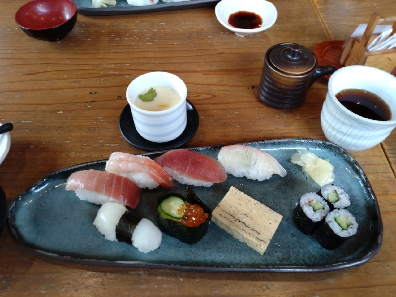 平日ランチに行きましたが、混雑なく駐車場も空いていました。日替わりランチは握りかちらしに鰆のフライ付きでしたが、フライなしの上握りランチを注文。食べるのもゆっくりになり、ほうじ茶、サラダ、茶碗蒸し、お味噌汁、握りに食後のコーヒーで十分満足でした。