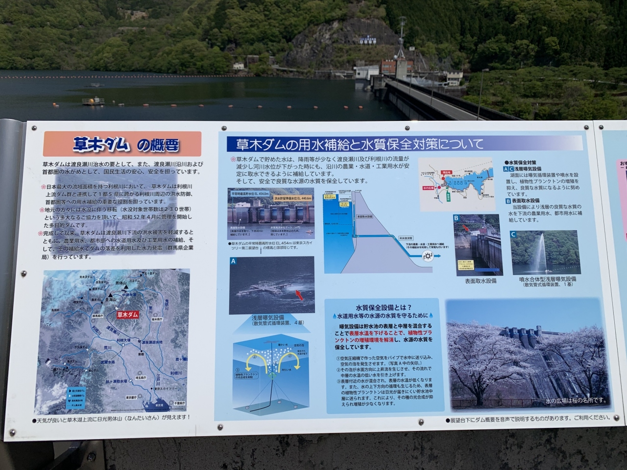 水没することになった東村神戸(こうど)・沢入(そうり)地区の住民の激しい反対運動を経て、結局は昭和52年(1977年)に完成しました。最初は”神戸ダム”という名だったのですが、地元住民の要望で”草木ダム”に改称されたそうです。展望台からは緑の草木に囲まれた水量豊かな草木湖が望めます。