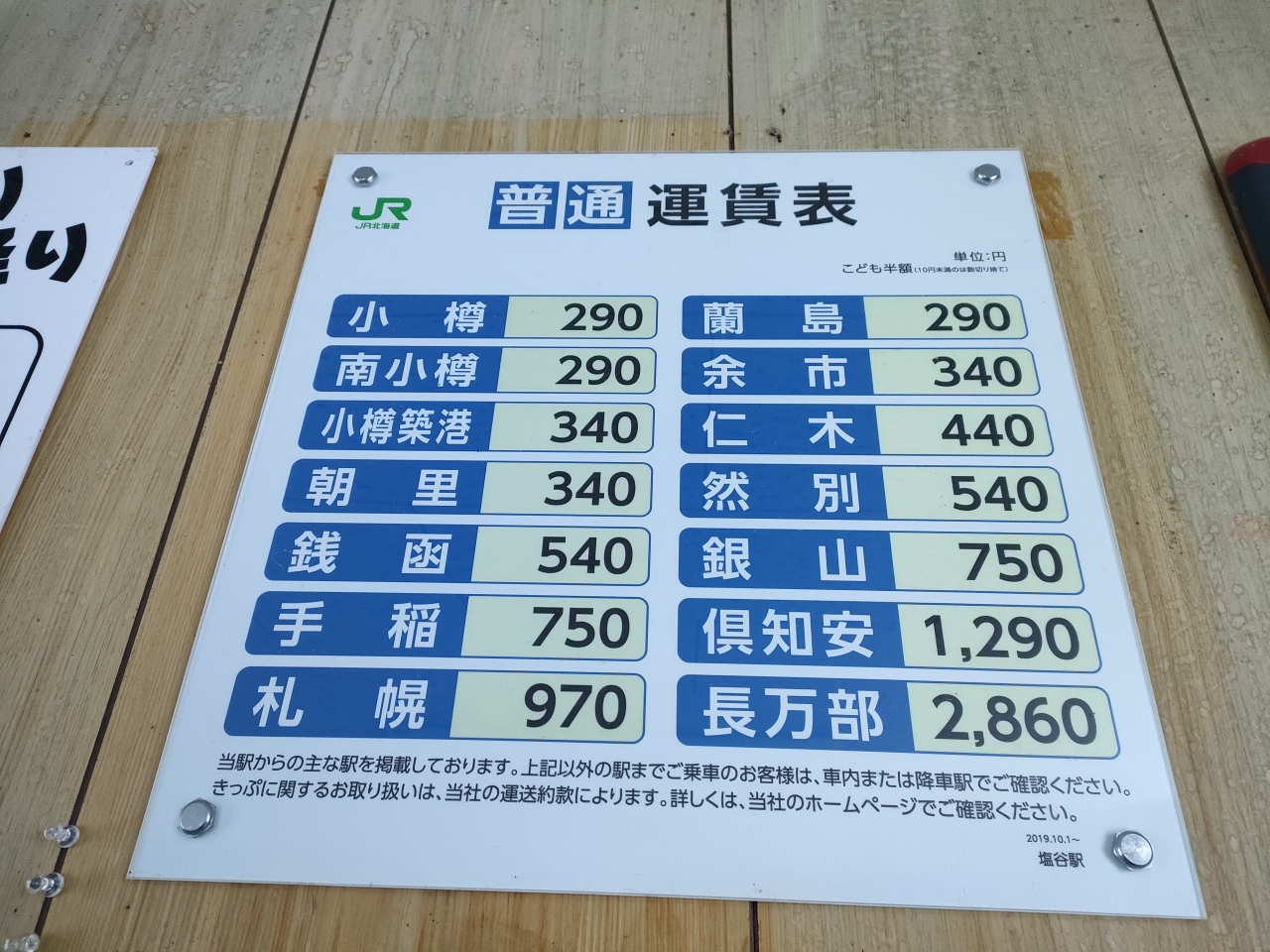 小樽駅からは¥290円。それまでの札幌~小樽駅間に比べ、割増感があります。また、小樽駅でさんざん宣伝していますが、小樽から先は、交通系ICカードが使えず、札幌方面から向かう場合、予め、通しの切符やフリー切符などを買っていなければ、いったん小樽駅で精算することになるとのことです。