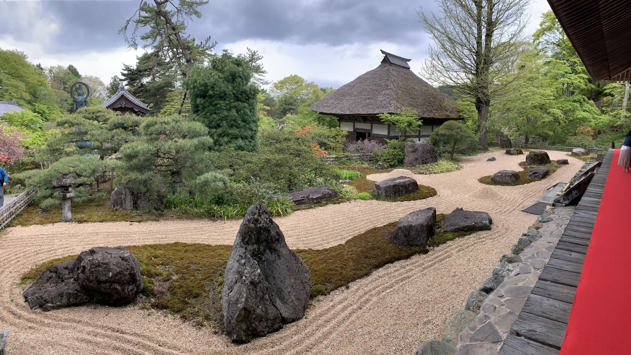 南北朝時代の暦応2年(1339年)に創建された「青龍山 吉祥寺」。吉祥寺は、鎌倉建長寺を本山とする臨済宗の禅寺とのこと。その「山門」。拝観料は500円と高め。釈迦堂(宝泉殿)は、寛政2年(1790年)に再建されたそうです。釈迦堂の釈迦如来坐像は、鎌倉時代後期の作と伝えられ村の重要文化財。本堂前には臥龍庭(がりゅうてい)と呼ばれる枯山水。本堂は延宝3年(1675年)に再建されたとのこと。本堂の裏には池と青龍の滝、横には昇龍の滝、釈迦堂の奥には不動の滝。とにかく、庭や池や小滝などが至る所に配された趣ある寺で、”花寺”としても知られています。