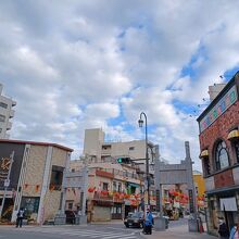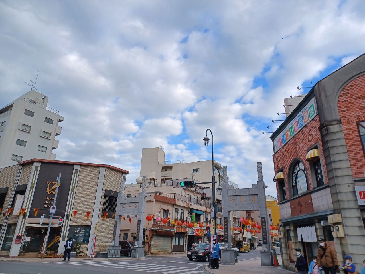 大門に比べると誘導門は細身です。ランタンフェスティバル開催中で、ランタンの飾りが綺麗でした。