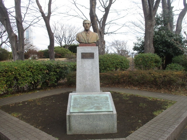 野毛山動物園の隣に野毛山公園入口近くに日本で初めての近代水道を完成させたヘンリー・スペンサー・パーマー銅像がありました。パーマー氏は非常に水質が悪かった横浜の伝染病の恐れを予期して早急なる近代的水道の必要性を要求してたそうです。過去に広東で水道計画を成功させた実績のあるパーマー氏を横浜に招聘し水道工事を一任し水源を相模川支流の道志川から野毛山貯水池に30マイルに及ぶ水道工事を1885年に着工し近代的な洋式水道を完成させたそうです。