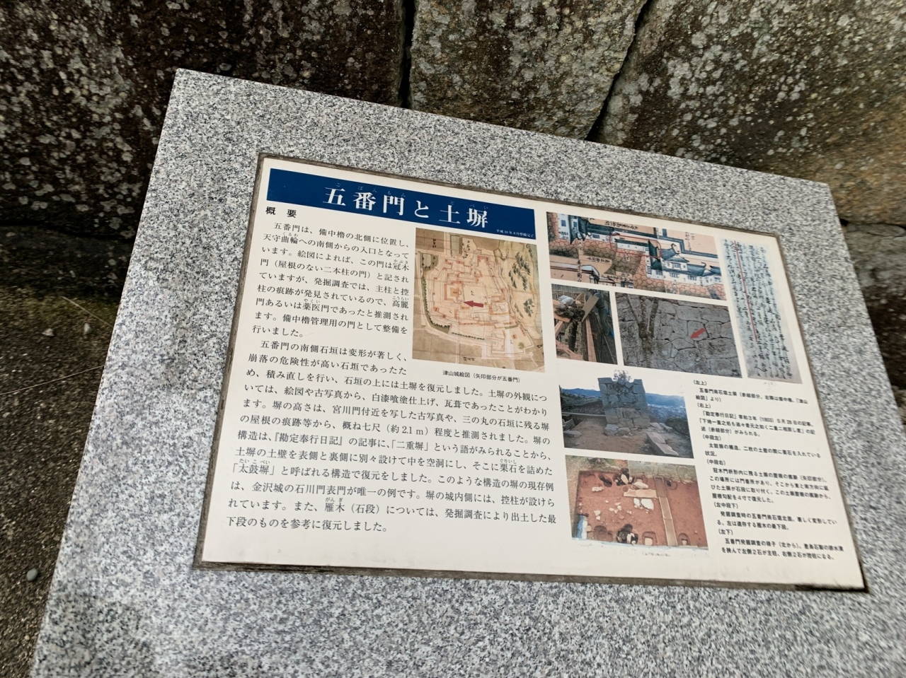 岡山県津山市にある城跡です。今はお城はなく、城跡と周りは公園として地元の方に親しまれています。城跡敷地内に入るには入場料が必要です。家族と散策に伺いました。五番門の石垣がまだ残っていて、石垣の間に入ってみると津山城の面影を感じることができました。