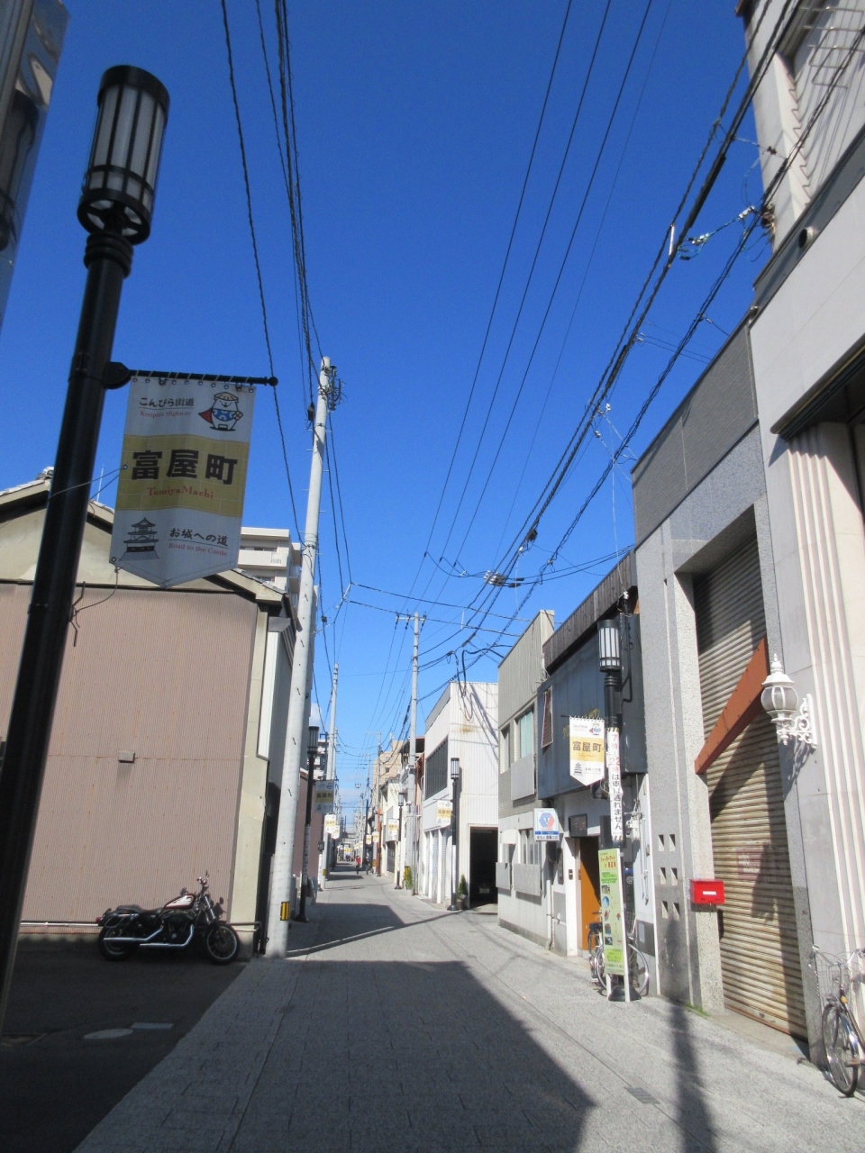 丸亀市の中心を散策した際、通町商店街に平行するように南北に走っている【富屋町商店街】も散策しました。商店街といってもごくありふれた裏通りで、人とすれ違うこともほとんどありませんし、シャッターの閉まっていないお店を見つけるのが大変が位でした。妙法寺をいうお寺があるので、昔ながらの中心部だということは辛うじて分かったのですが、それ以外には特筆するところがなく、ショッピングスポットなのか否か、こちらも戸惑うほどでした・・・。