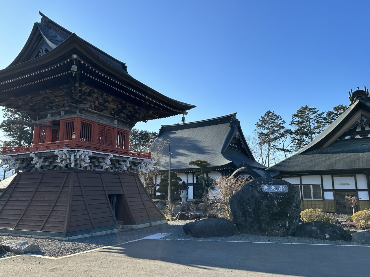 忍野村のメインストリートである県道717号線(山中湖忍野富士吉田線)沿いにあるお寺で、臨済宗妙心寺派の古刹です。平安時代末期1184年に真言宗のお寺、長寿山上天寺として創建されました。その後江戸時代に再建された際に臨済宗に改め、醫王山承天寺と改称されました。