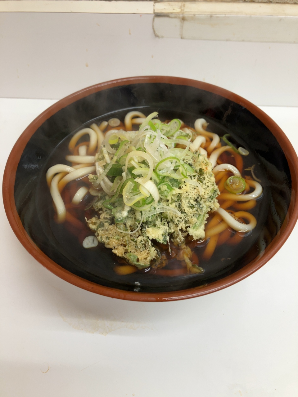 新丸子駅前ローカル立食い丸七の春菊天うどん
