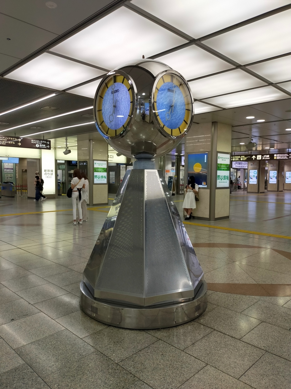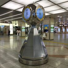 名古屋駅の太閤通口近くにある時計です。名古屋駅の待ち合わせスポットといえば金時計の方が有名ですが、銀時計も待ち合わせスポットになっていて、時間帯によってはけっこうな人がいたりします。今回は朝早かったので、人はまばらでした。