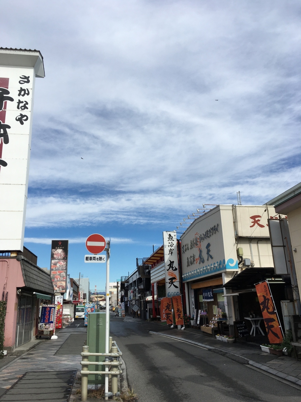沼津漁港にびゅうおを見に行った際に寄りました。平日でまだ10時ごろとランチ前だったからか観光客の姿もまばらでした。しかし軒先から干物の良い香りや食べ歩き用の海鮮などの呼び込みもありついつい食べ歩きしたくなりましたがお昼に食べたいものがあったため我慢しました。