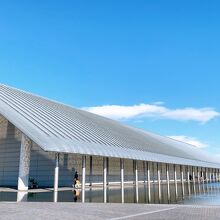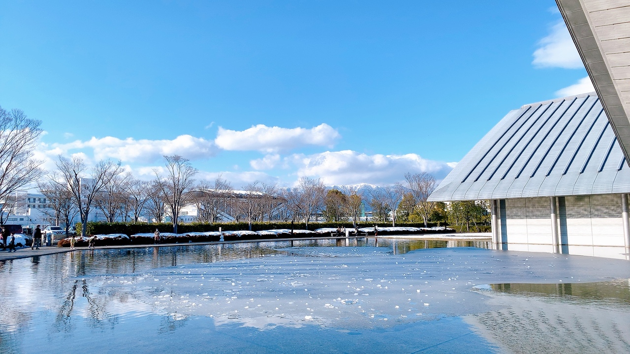 作品はもちろんのこと、この美術館は、建物自体もアートなので、それも是非楽しんでほしいです! 真冬の寒い時期(雪が降った後など)は、美術館の周りの池に氷が張っていて、遠くに見える比良山系もなかなか美しいですよ!
