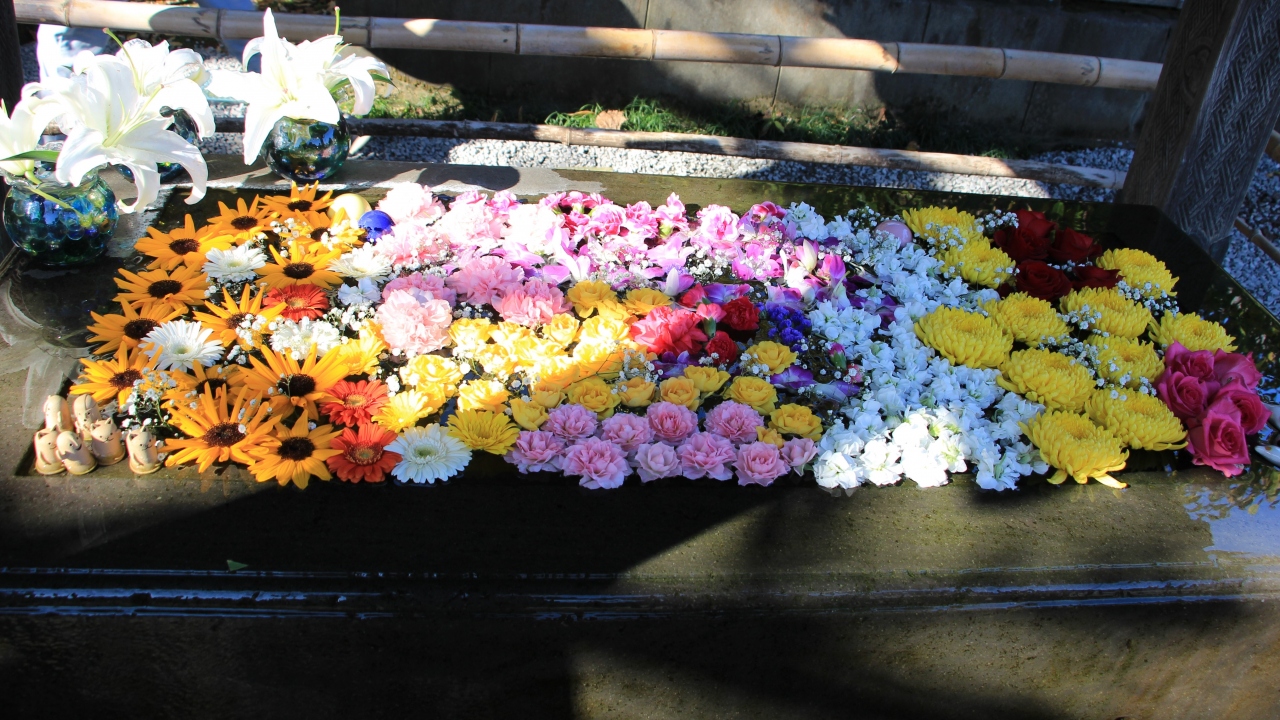 前玉神社には綺麗な花手水がいくつかあり、とても癒されて良かったです。