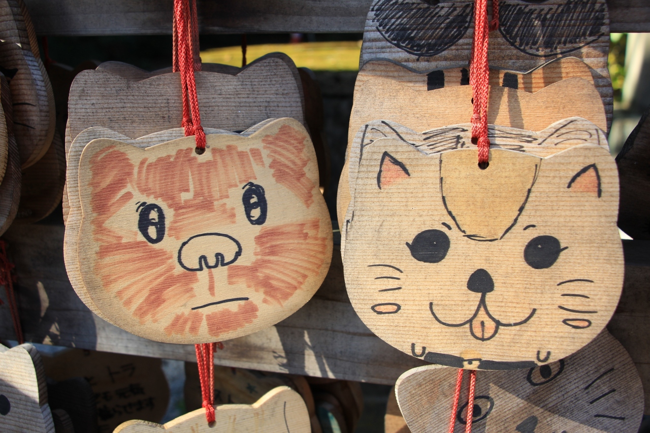 また、神社に4匹の猫が住んでいて、それ故に絵馬が猫型で自由に猫の顔を描ける点がユニークで良かったです。