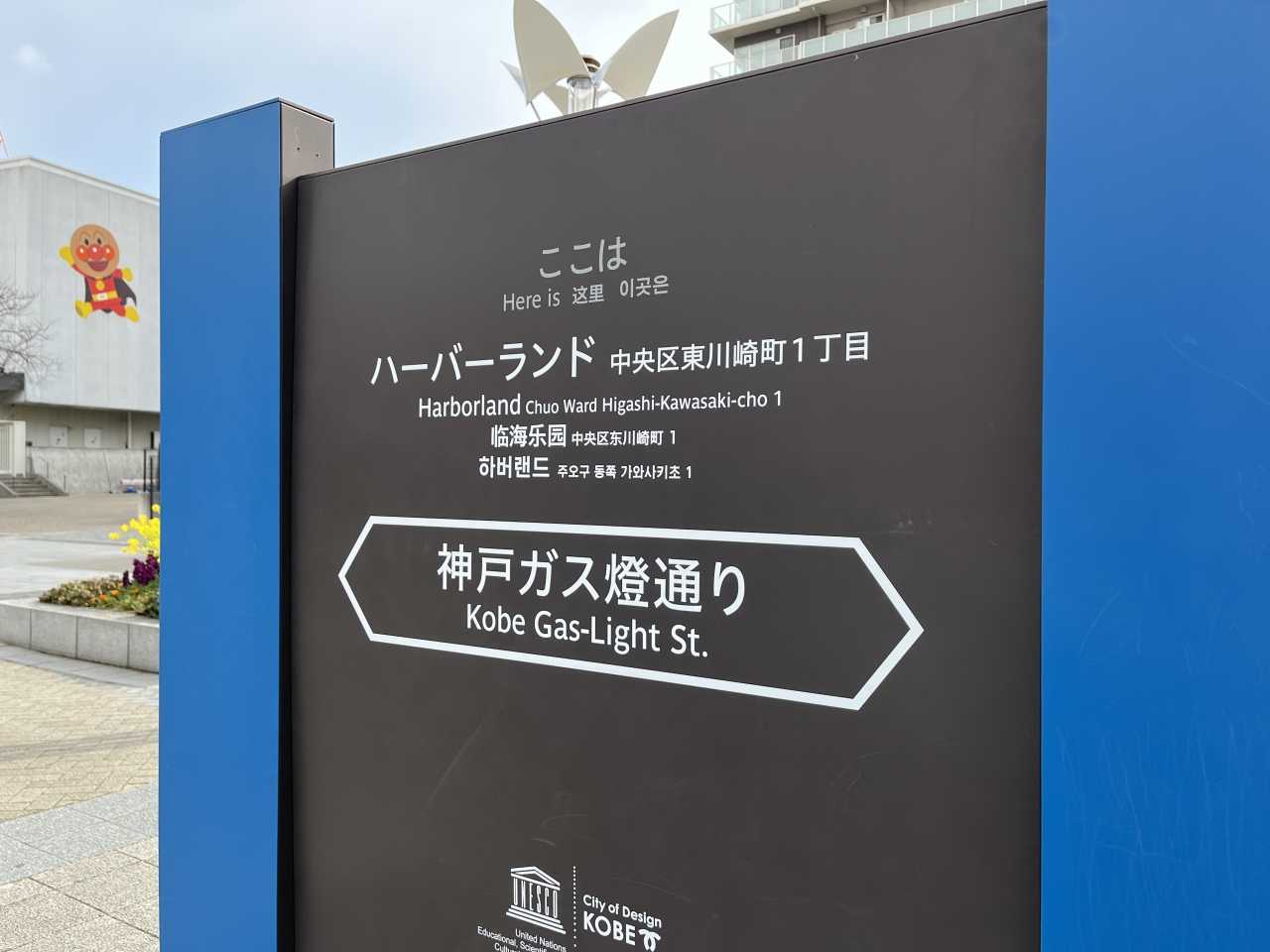 神戸を散策しているときにハーバーランドにも行ってみたのですが、きれいなガス燈とアンパンマンのキャラクターの石像が並ぶ通りがありました。「神戸ガス燈通り」として整備されているらしく、歩道と車道がしっかり分かれているので歩いて散策しやすかったです。