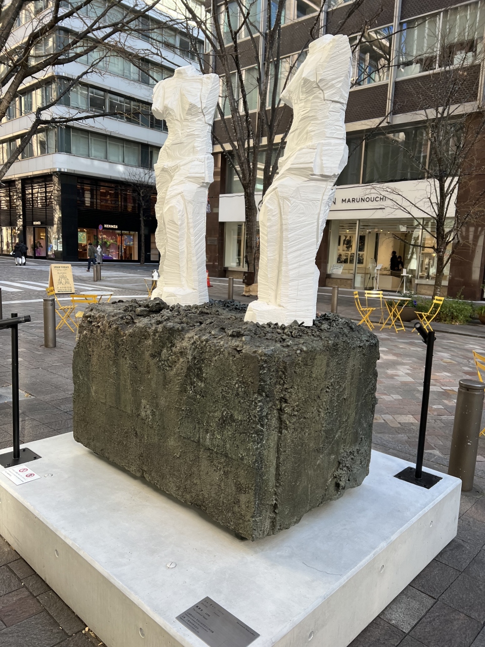 丸の内仲通りの歩道にアート作品が展示されています。以前来た時と作品が変わっていたので、時々入れ替えられるのでしょうね。シュールな感じの作品が多いです。祝日は仲通りは車は通行止めになるみたいで、散策を楽しめました。