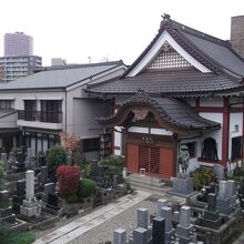 丸ノ内線四谷三丁目駅から暗坂を5分ほど上ったところにある、浄土真宗大谷派の寺院です。本堂は、暗坂から石段を降りた先にありました。均整のとれた屋根の美しいお堂で、白い壁と赤い柱のコントラストがあざやかです。すぐ横には吊されていない立派な梵鐘も置かれていました。