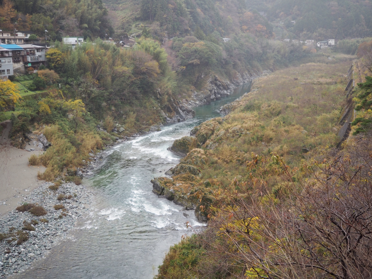 四国山地の中央部に四国最大の吉野川により造られた渓谷が大歩危小歩危です。鉄道で阿波池田から高知へと向かうとしばらくするとV字谷の渓谷が見えてきます。川沿いの水面近くには大きな岩がゴロゴロと見られ、深い渓谷などと合わさった景観はなかなか見られない珍しいものです。一応小歩危が北側で、大歩危が南側にありますが、連続しているので、それほど違いはない感じです。